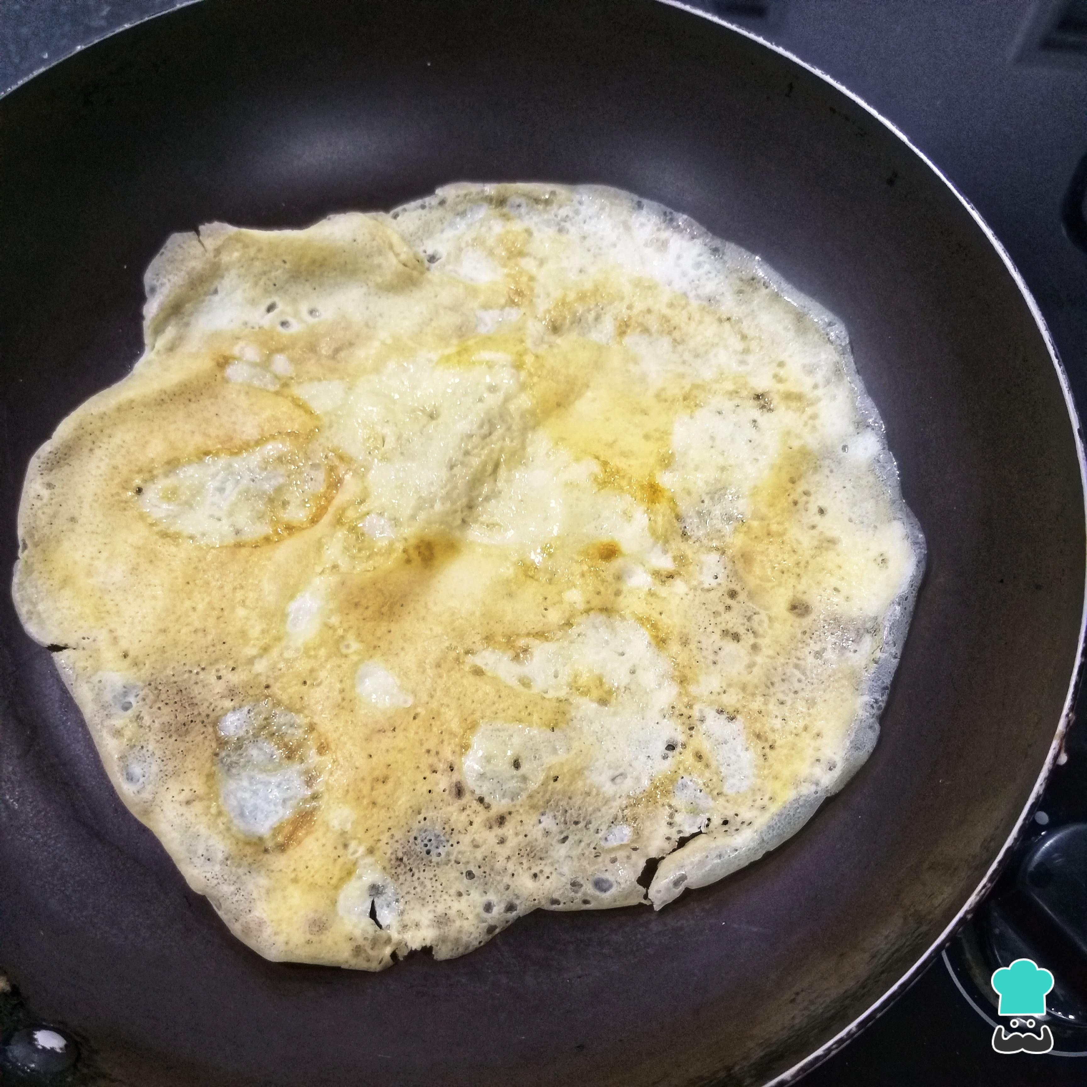 Dica: a porção de massa deve ser pequena mesmo, caso contrário você estará preparando uma omelete em vez de panqueca.