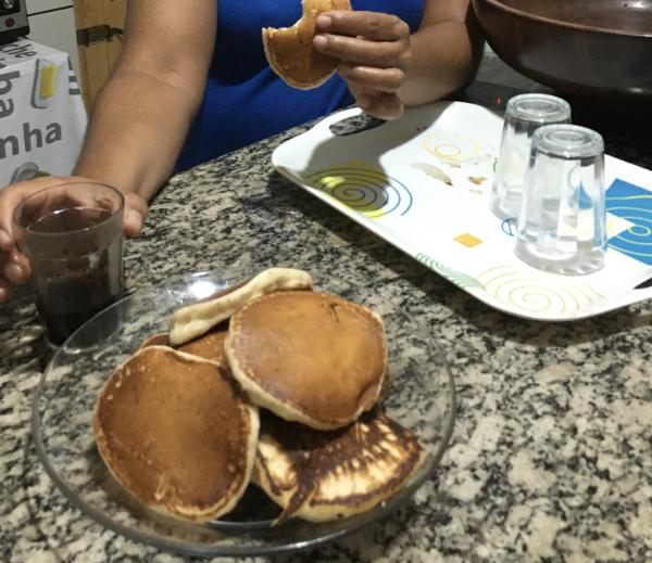 Salvou meu café da manhã, haha. Aqui em casa não tinha biscoito, leite, ovo, nem nada. Só farinha, fermento, açúcar e óleo haha. Troquei o leite por água mesmo e nem ficou ruim. Ficou desmanchando um pouco (provavelmente por isso), pouco encorpada, mas deu certo e tava bom hahaha;