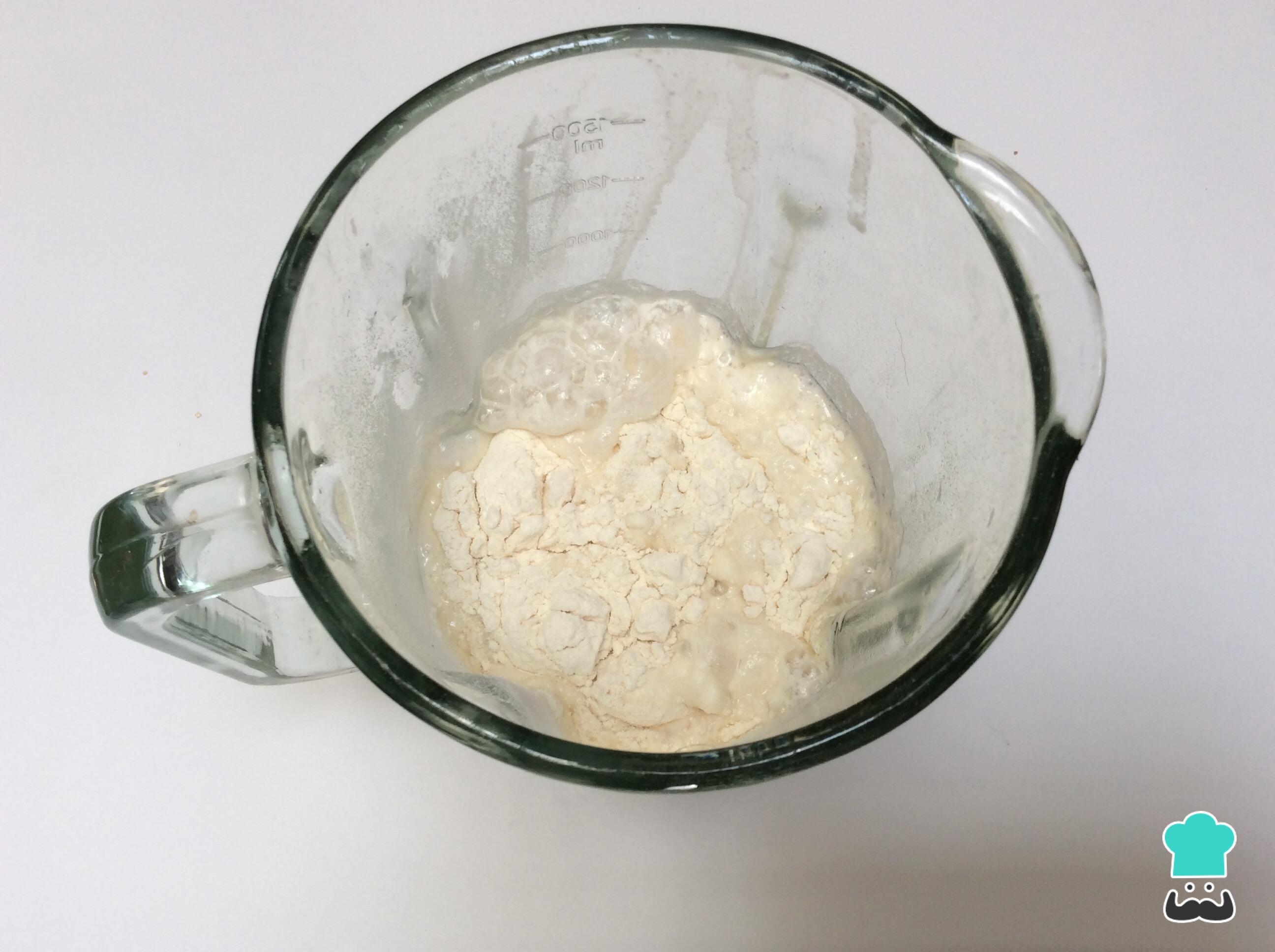 Coloque os ingredientes líquidos no liquidificador, bata e acrescente os secos. Volte a bater até obter uma massa de panquecas americanas sem ovos homogênea e ligeiramente líquida.