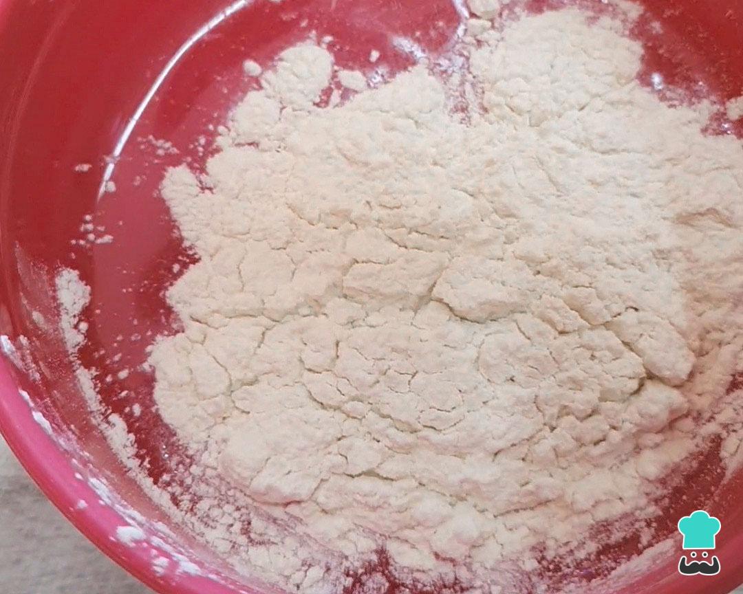 Preparar panquecas com farinha de arroz é bem fácil e nem precisa de batedeira! Misture os ingredientes secos numa tigela: a farinha, o fermento, o açúcar e o sal.