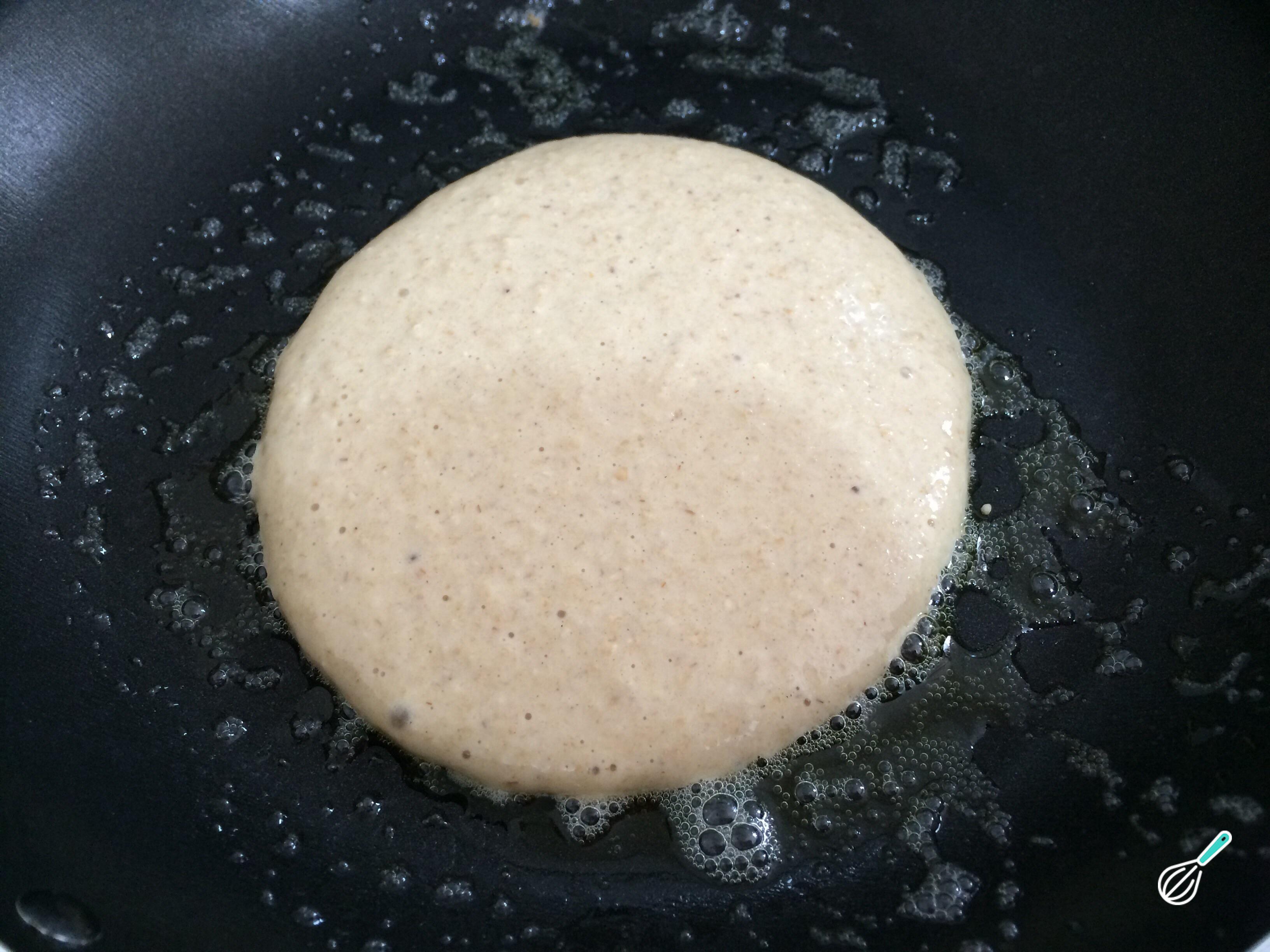 Em uma frigideira antiaderente com um pouco de óleo, adicione uma colher de sopa com a mistura e cozinhe por 3 minutos de cada lado. Retire e repita até esgotar a massa.