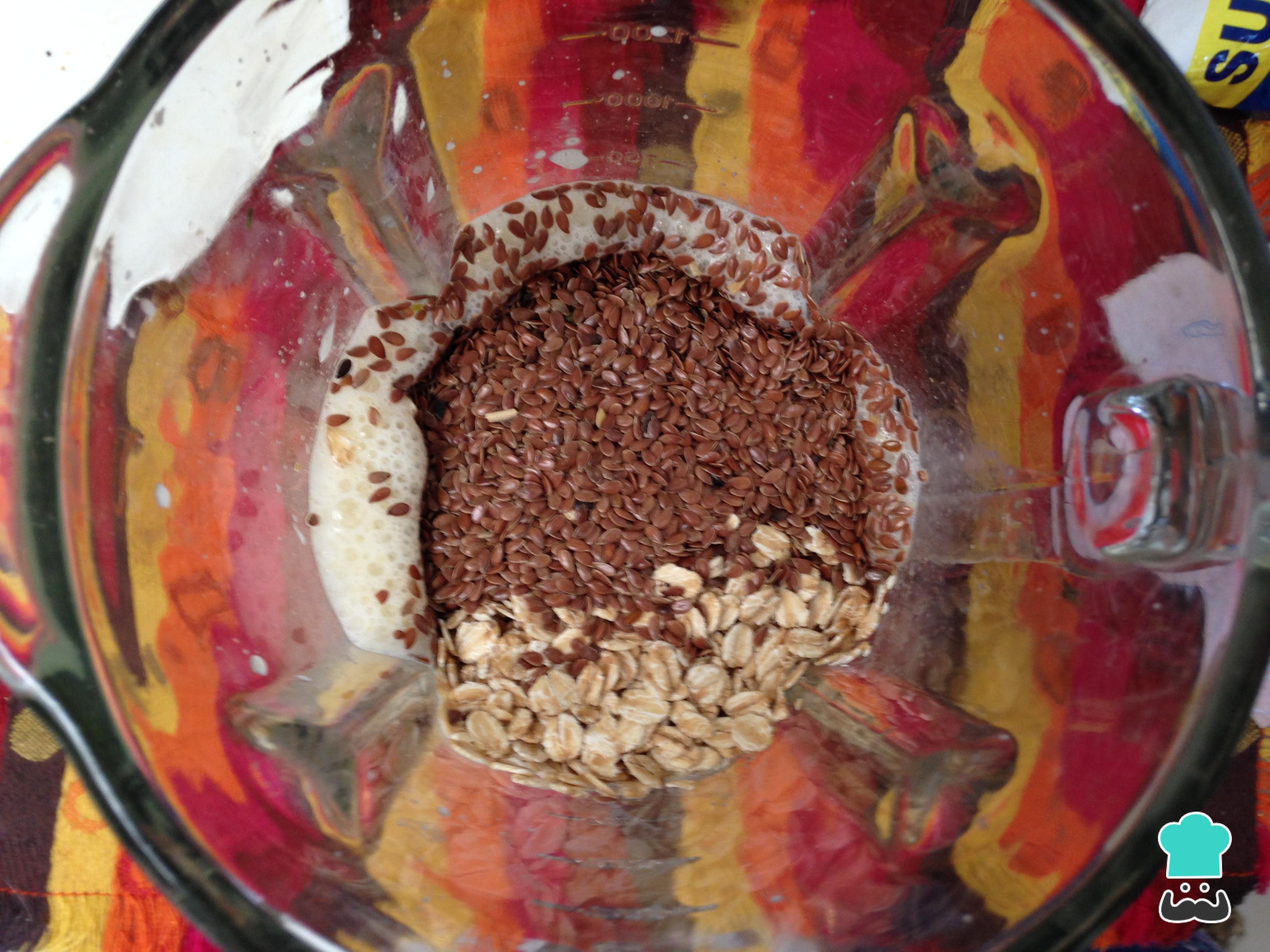Adicione mais dois ingredientes desta receita de panquecas de banana e aveia: a linhaça e a aveia, e bata novamente.