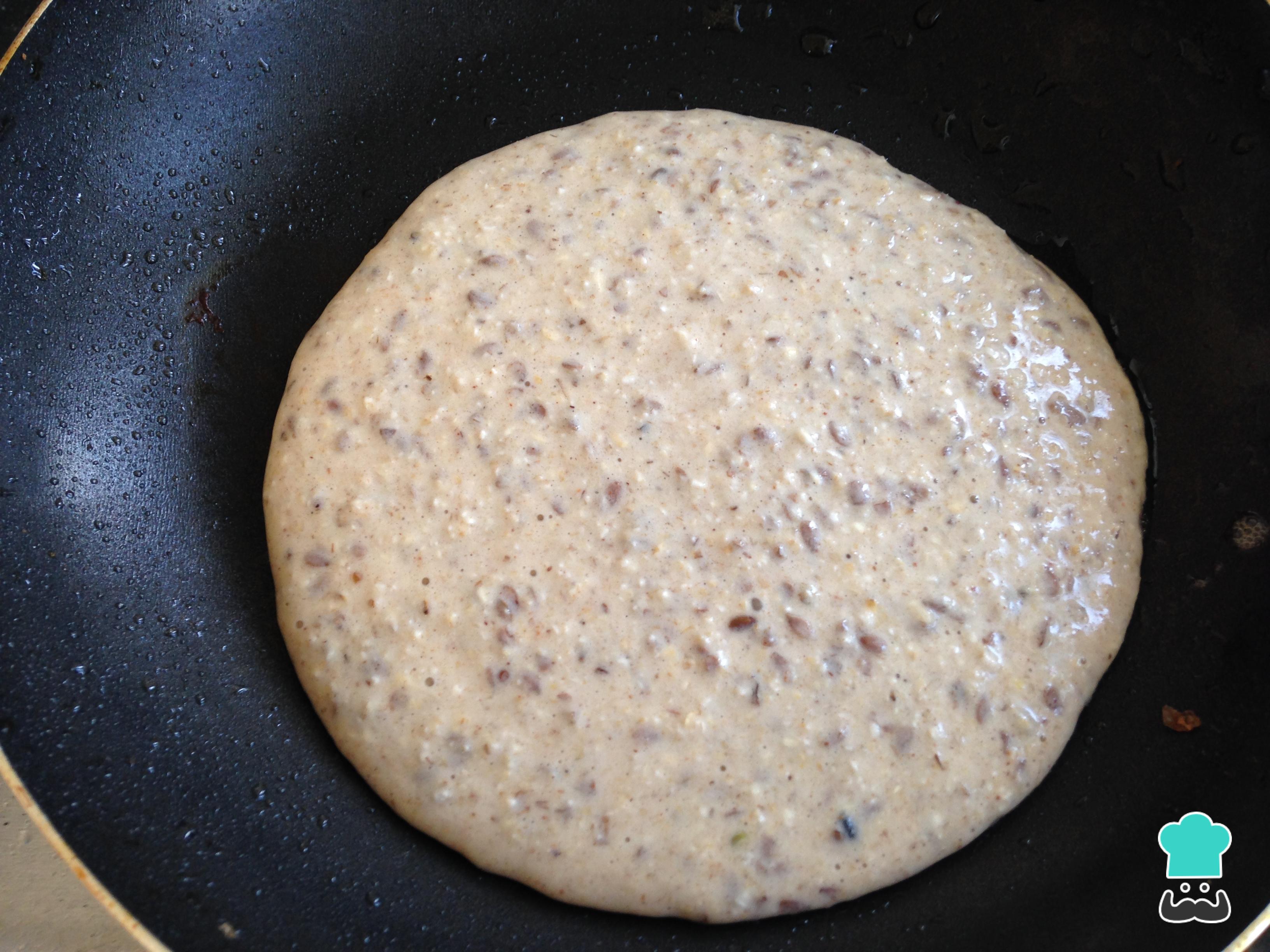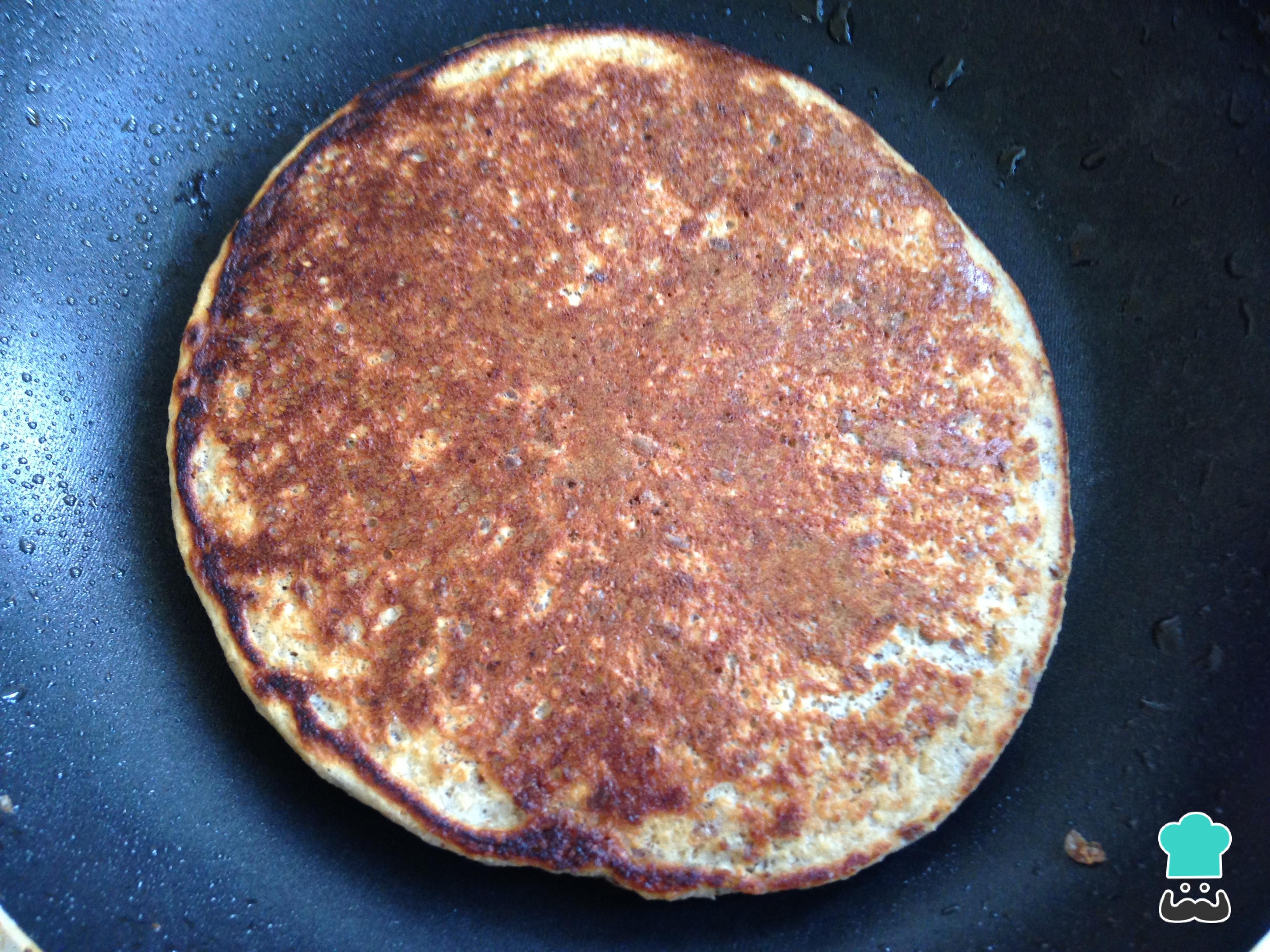 Após os 3 minutos, vire ao contrário e cozinhe por mais 2-3 minutos, ou até a panqueca ficar dourada.