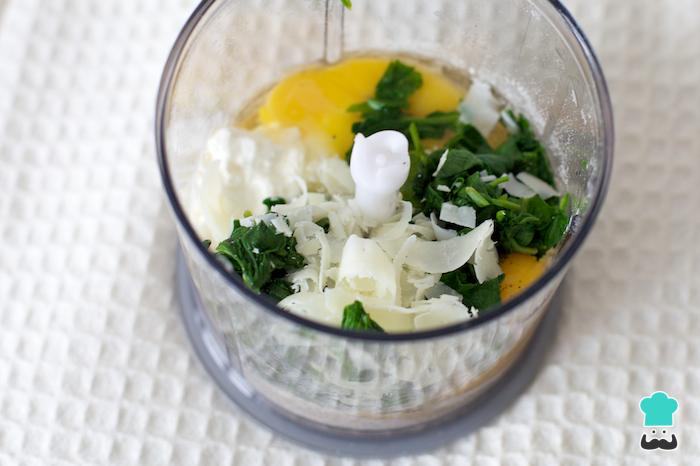 Para preparar esta receita de panquecas de espinafre bata no liquidificador ou processador de alimentos todos os ingredientes indicados. O ideal é obter uma massa homogênea e cremosa (não líquida).