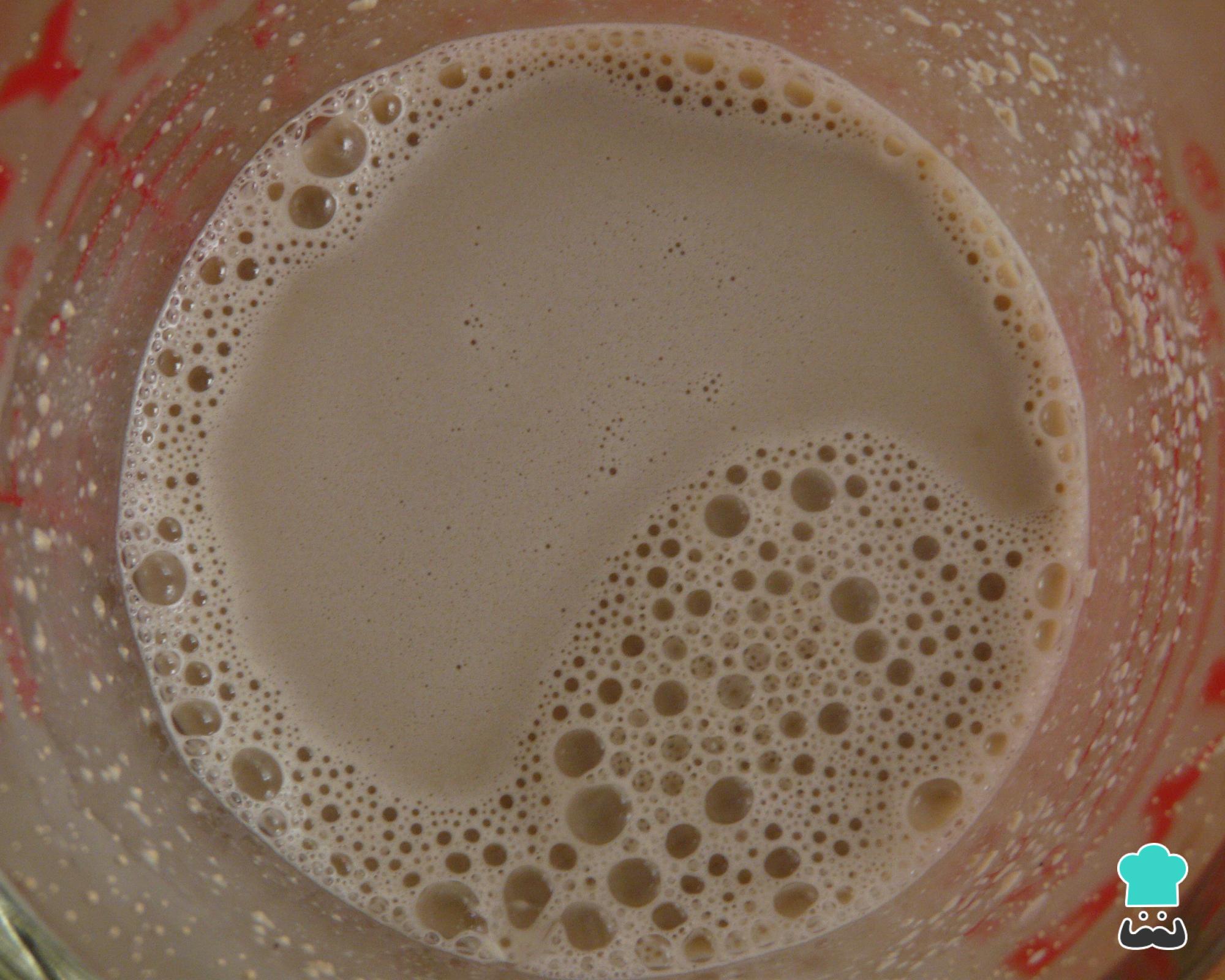 Comece por desfazer o fermento com as mãos e dissolver na água morna.