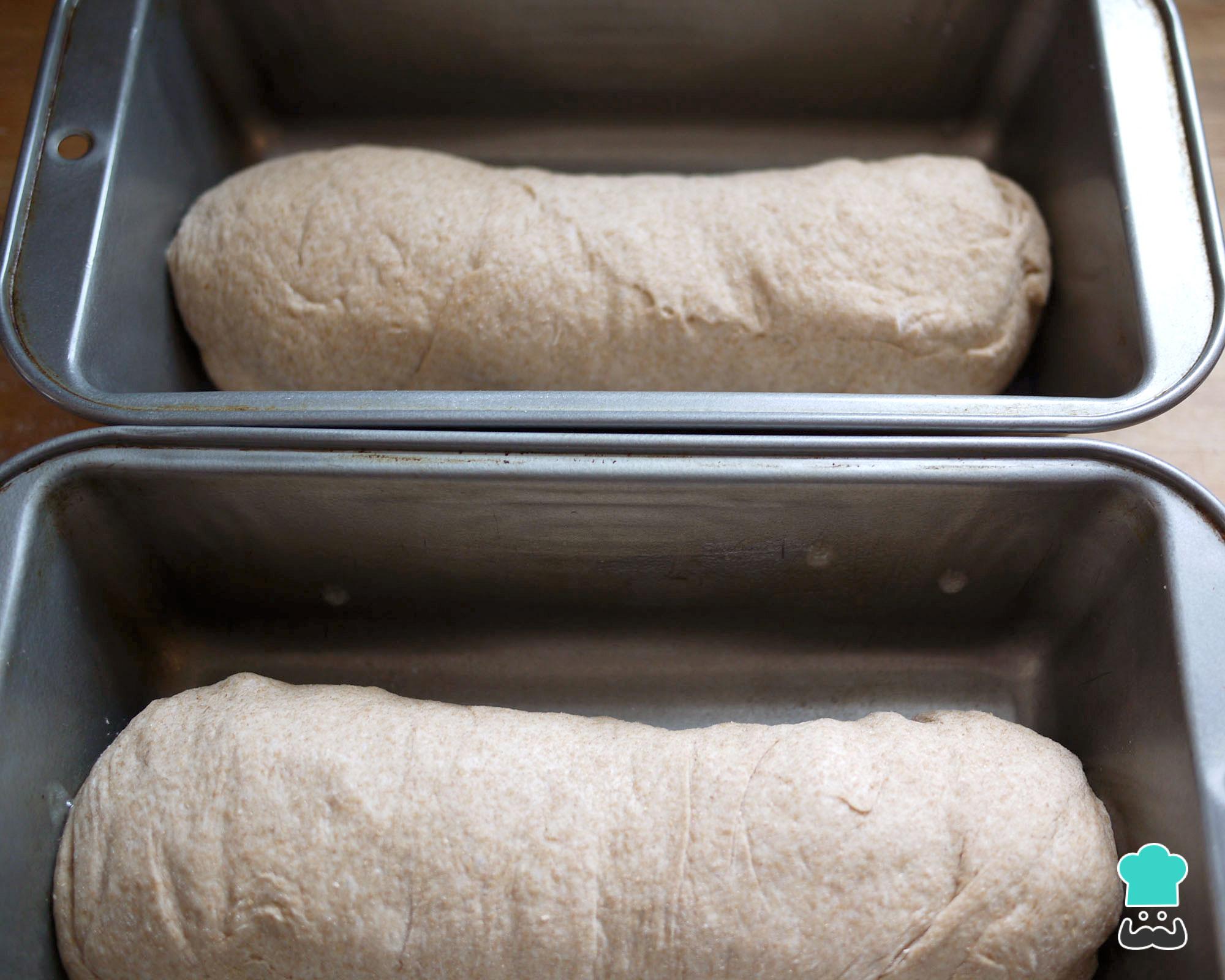 Depois desse tempo separe a massa do bolo em duas metades iguais, modele como um rocambole e acomode em duas formas de pão (forma de bolo inglês) untadas com óleo, como na foto. Deixe crescer por mais 30 minutos.