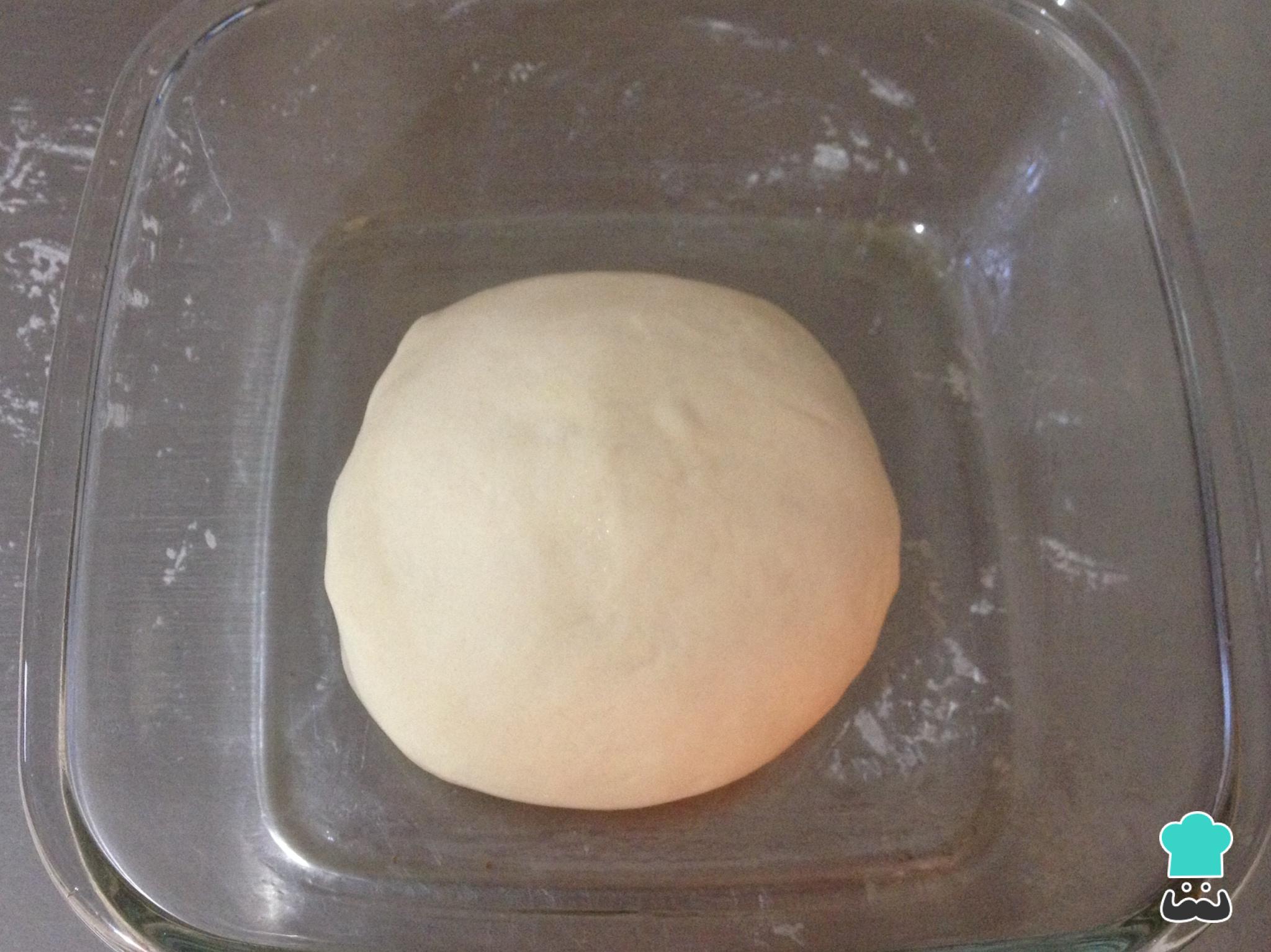 Modele a massa de pão branco em forma de bola e coloque em um recipiente untado com óleo ou polvilhado com farinha. Cubra com um pano úmido e deixe crescer em um lugar quente por 2 horas.