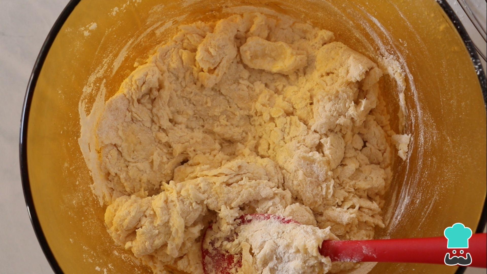 Misture bem e quando a massa chegar nesse ponto da foto (bem consistente) comece a misturar com as mãos - se preferir, coloque a massa em uma bancada enfarinhada.