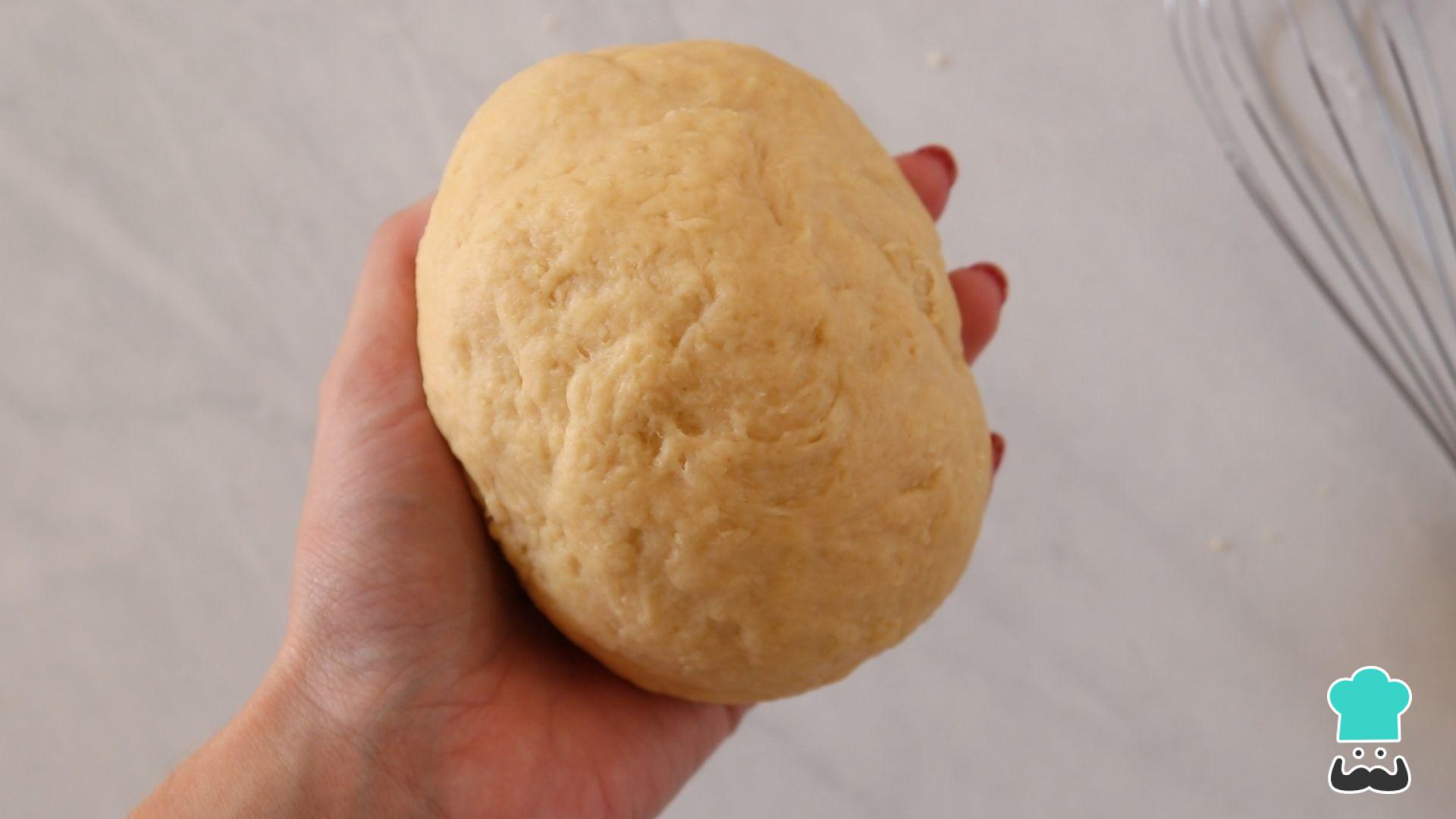 Misture a massa com as mãos até ela ficar assim, bem lisa e no ponto ideal para enrolar.