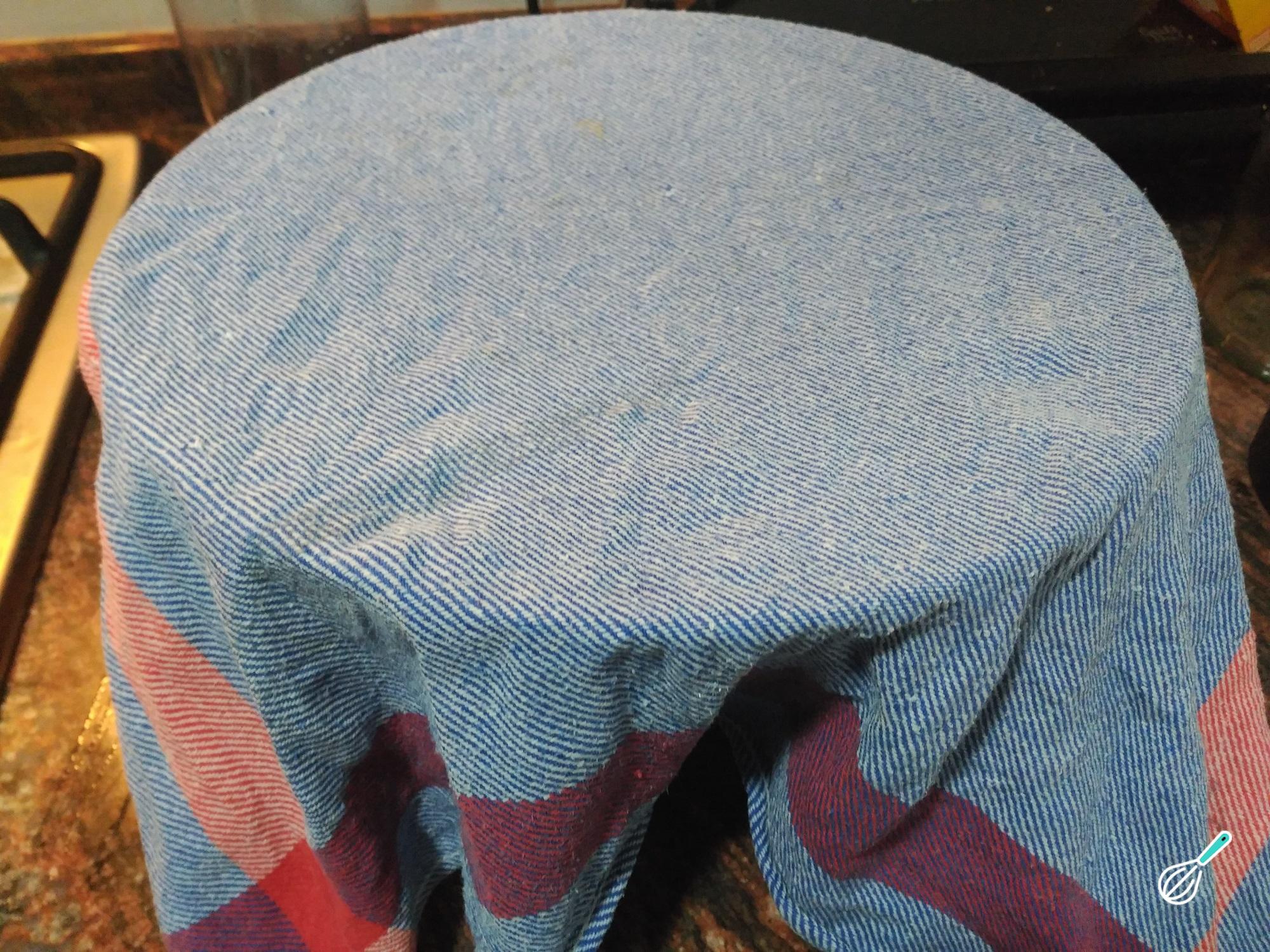 Quando os ingredientes estiverem bem misturados cubra a massa do pão caseiro fácil e rápido com um pano úmido e deixe repousar por 2 horas em um local ameno (de preferência que esteja a 20º C), sem correntes de ar.