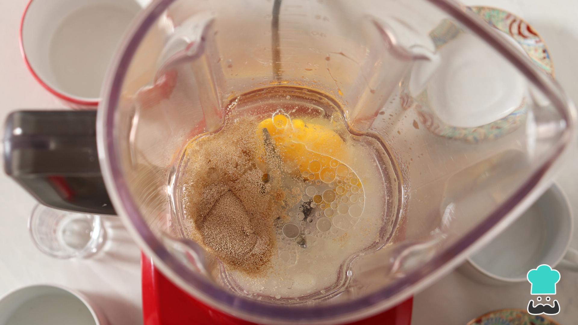 Bata no liquidificador todos os ingredientes, exceto a farinha de trigo e o ovo reservado para o fim da receita.