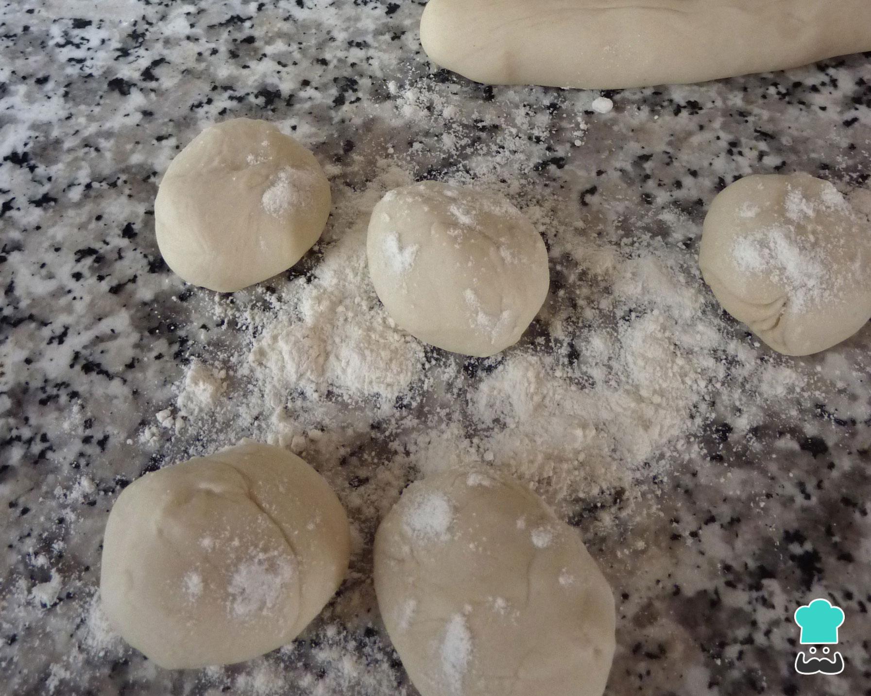 Dica: Polvilhe a massa com farinha de trigo para evitar que ela grude nas mãos e na bancada de trabalho.