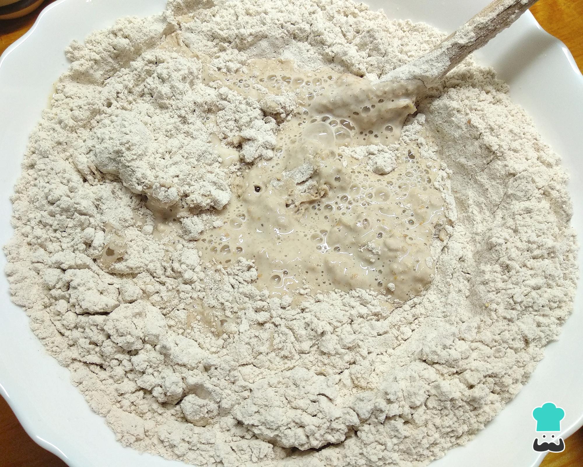 Dica: Neste caso usei uma mistura de farinha de trigo om farinha de centeio, no entanto você pode usar somente farinha de trigo. Nesse caso prefira usar farinha de trigo tipo 1, que é a mais indicada para o preparo de pão.