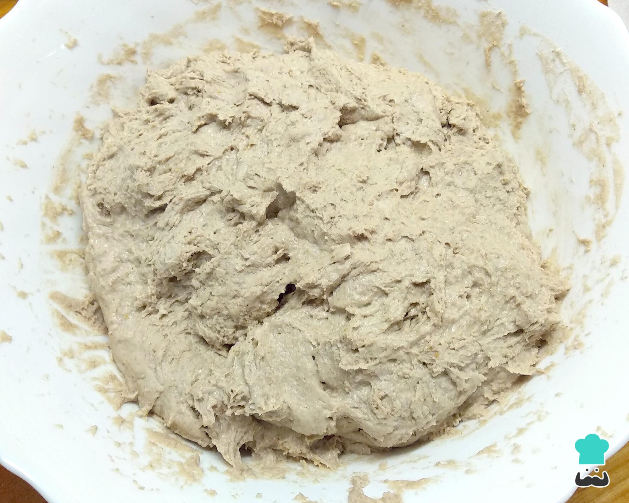 Dica: Nessa fase a massa não vai desgrudar da vasilha, isso é normal porque ela precisa fermentar para ganhar firmeza.