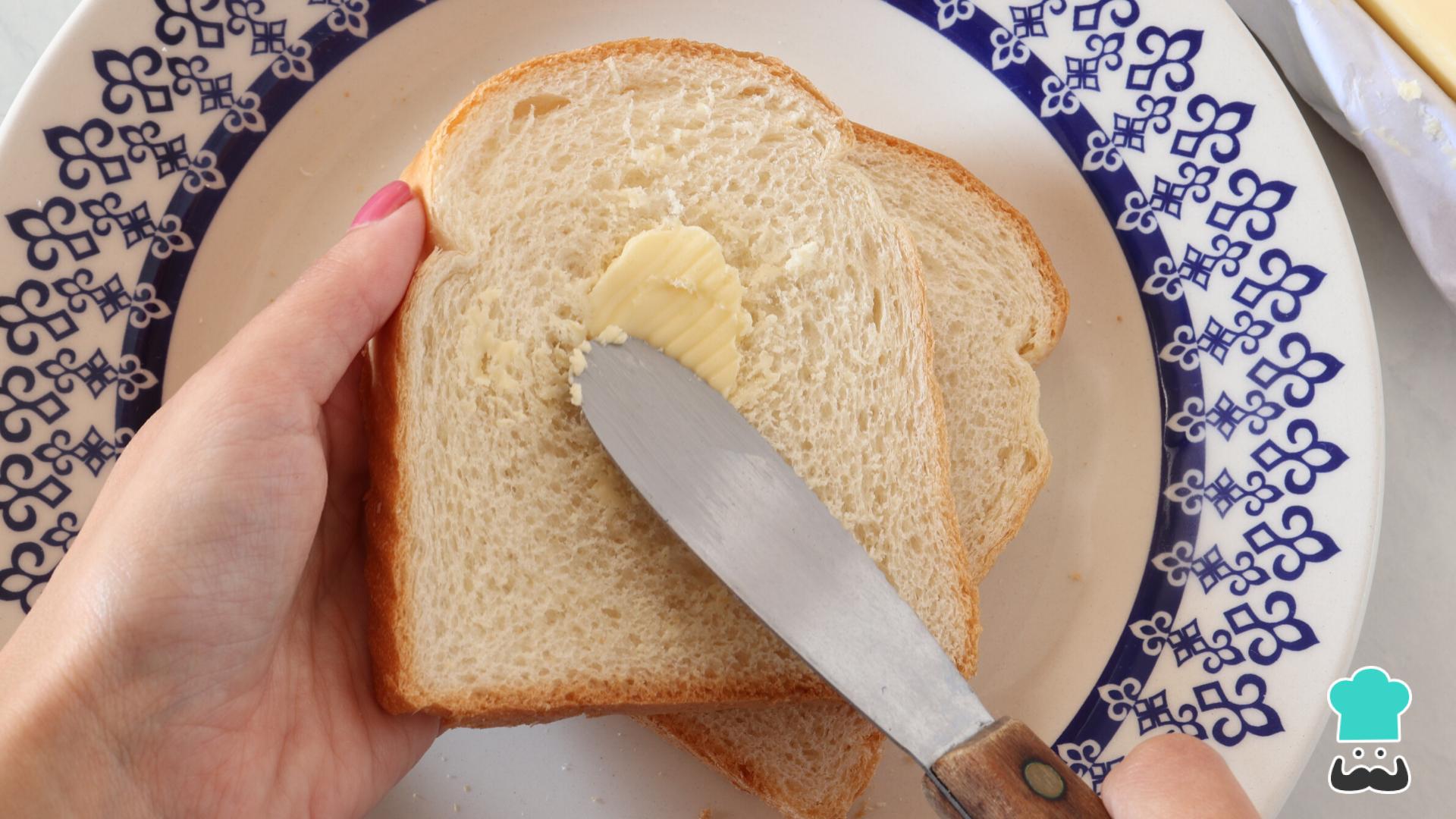 Passe manteiga nos dois lados do pão de forma.