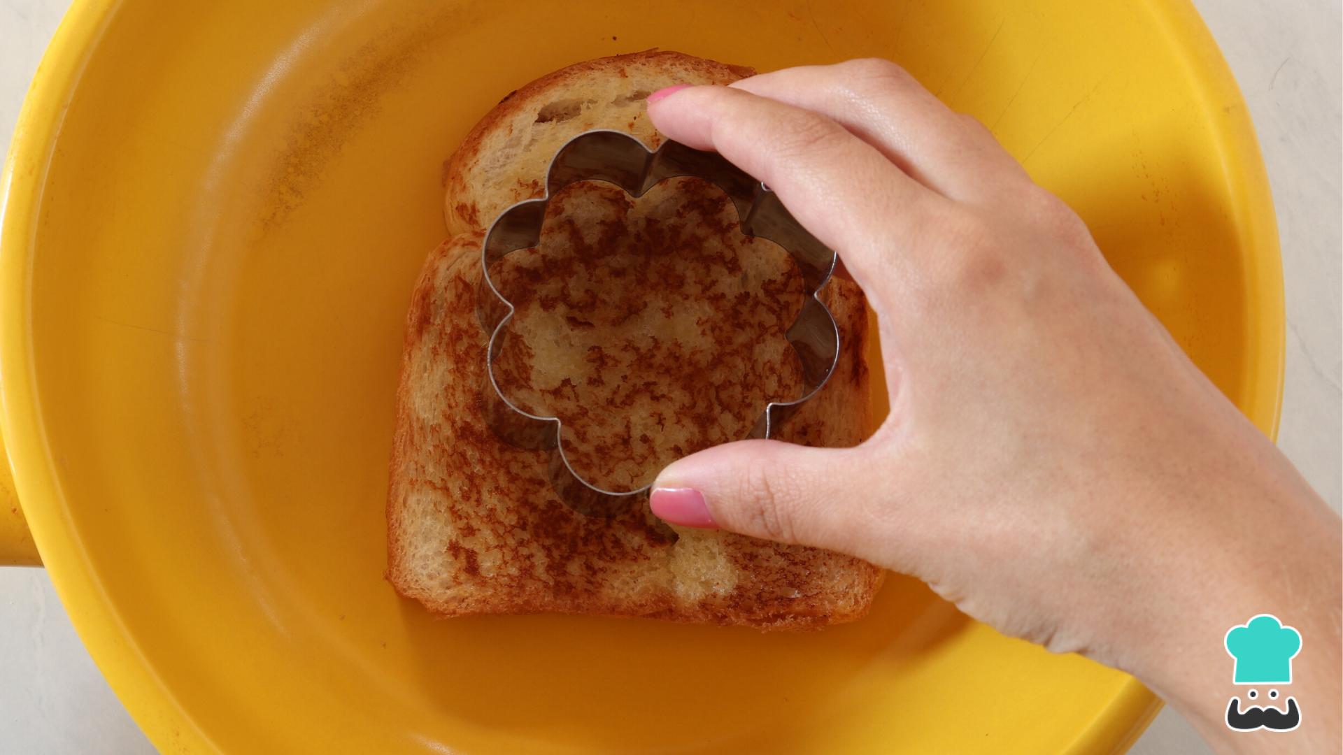 Dica: Se você não tiver um cortador de biscoitos como esse da foto, pode usar qualquer outro utensílio para cortar o pão - um copo, uma xícara e etc.