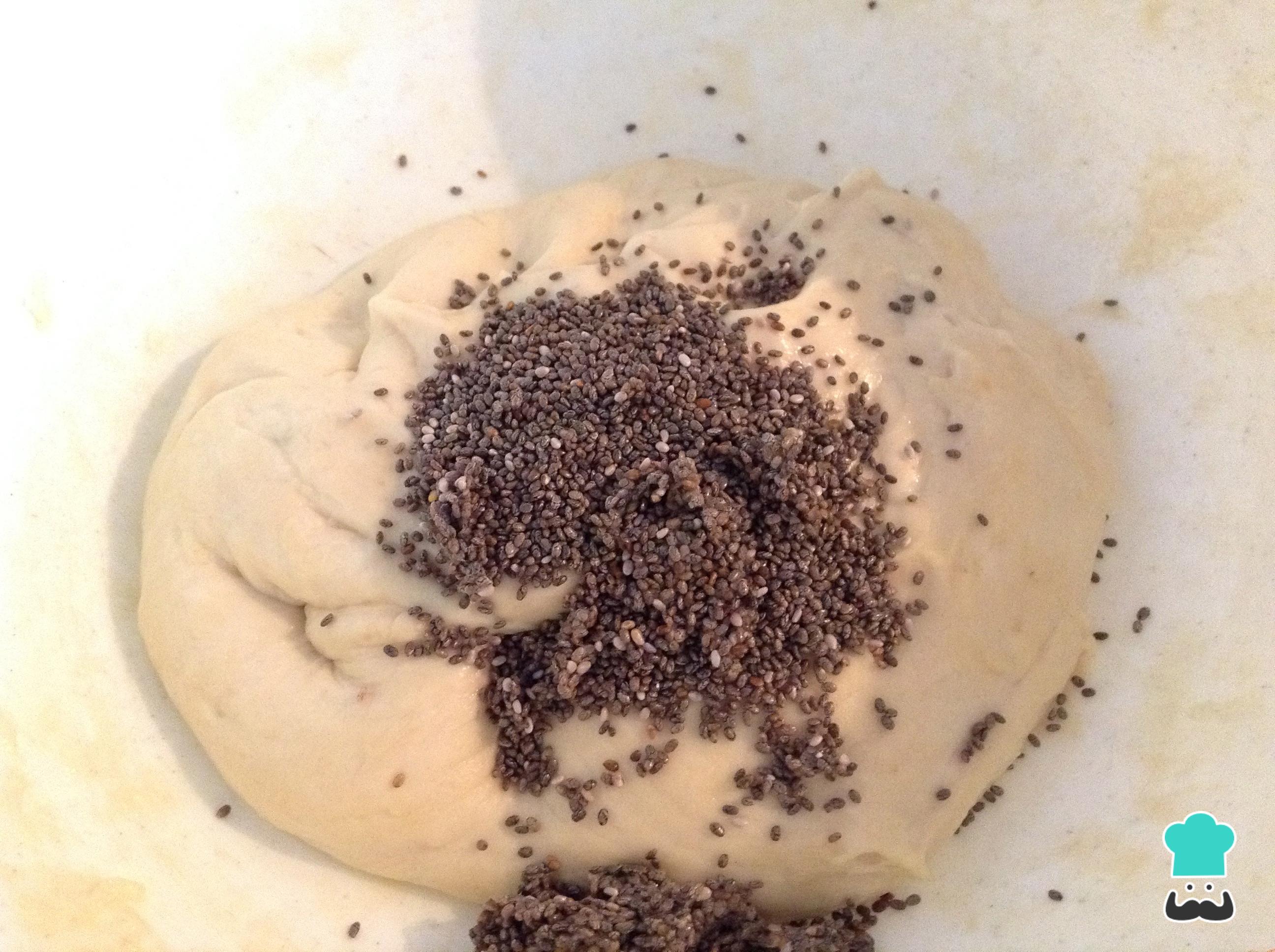 Após o tempo indicado, finalmente acrescente as sementes de chia e misture muito bem até integrarem na massa.