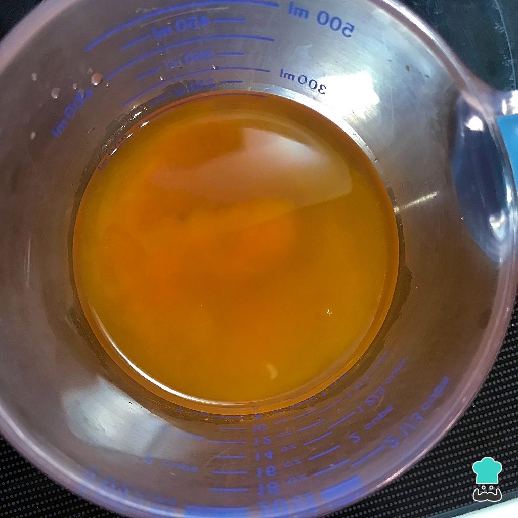 À parte misture os ingredientes molhados: a água morna, o purê de abóbora e o xarope de bordo.
