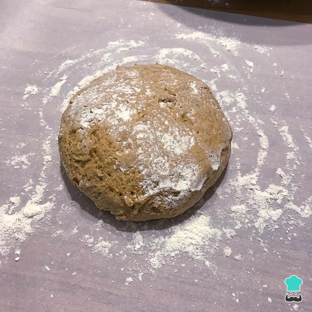 No dia seguinte coloque a panela com a tampa dentro do forno, ligue no máximo (230°C) e deixe por 1 hora, para esquentar. Enquanto isso coloque a massa sobre um papel manteiga, salpique farinha e modele em forma de bola. Deixe descansar por mais 1 hora (enquanto o forno aquece).