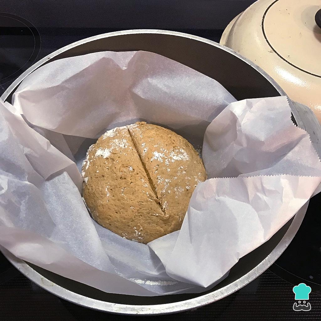 Depois de 1 hora coloque a massa junto com o papel manteiga dentro da panela quente, tampe e volte ao forno por 25 minutos.