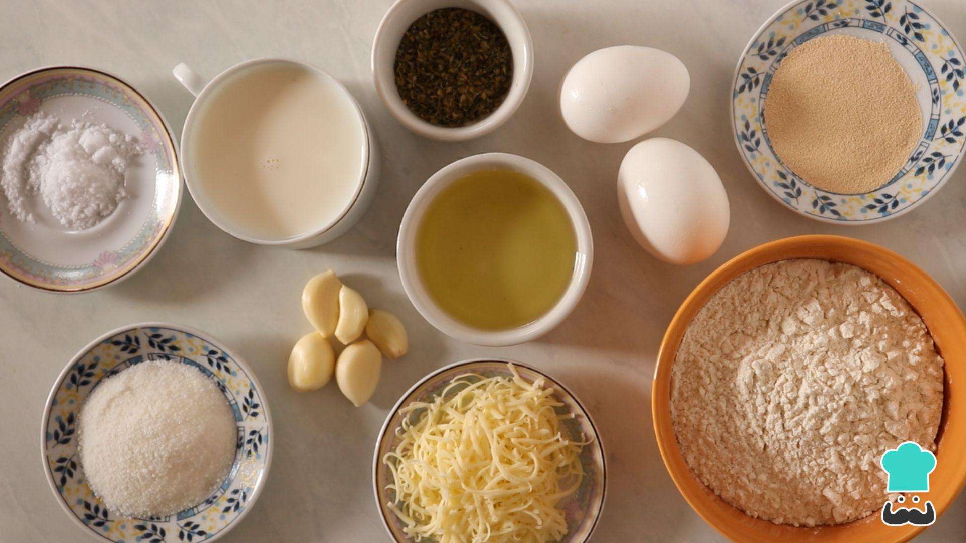 Separe os ingredientes do seu pão de alho caseiro de liquidificador.