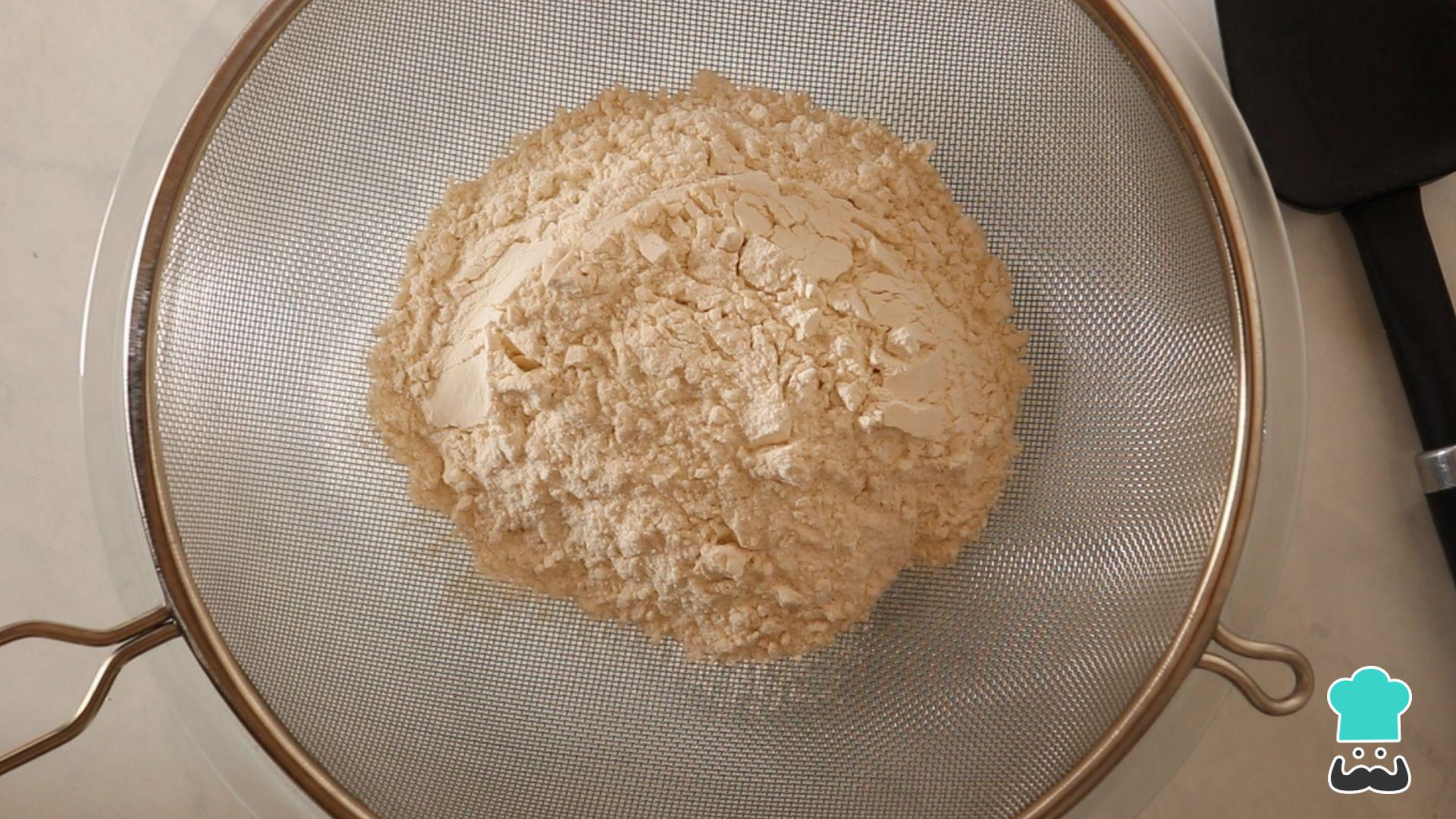 Em uma tigela grande acrescente a farinha de trigo, passando-a por uma peneira. Junte também o fermento biológico e misture.
