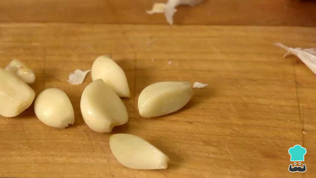 Para a versão caseira comece por descascar os alhos e colocá-los em um processador de cozinha ou tigela, se quiser usar o mixer.