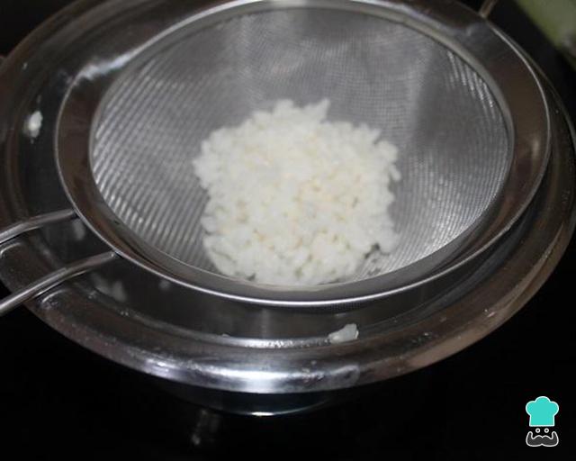 Após cozer o arroz, escorra-o e deixe esfriar completamente.