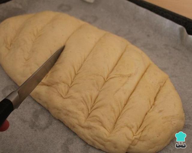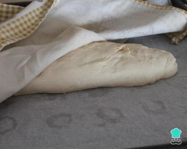 Após o tempo indicado polvilhe farinha numa superfície de trabalho e amasse levemente a massa, para retirar o ar. Modele no formato que preferir e coloque num tabuleiro de forno forrado com papel manteiga. Volte a cobrir com um pano e deixe crescer em um local quente por mais 1 hora ou 1 hora e meia.