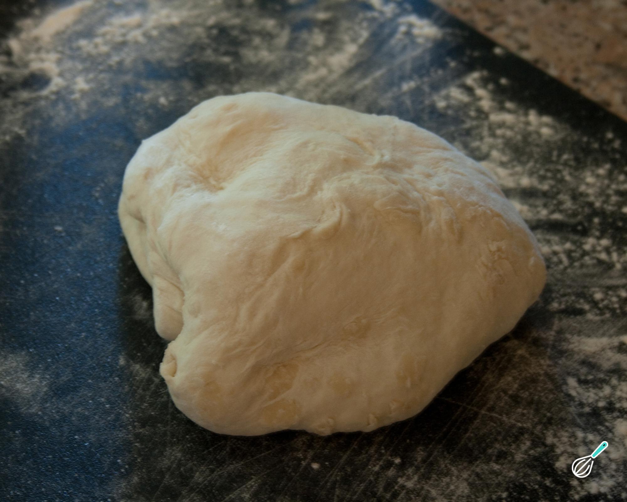 Após o tempo indicado, sove a massa com a ponta dos dedos por cerca de 5 minutos, para eliminar o ar que se formou nela. Deverá obter uma massa elástica e mole.