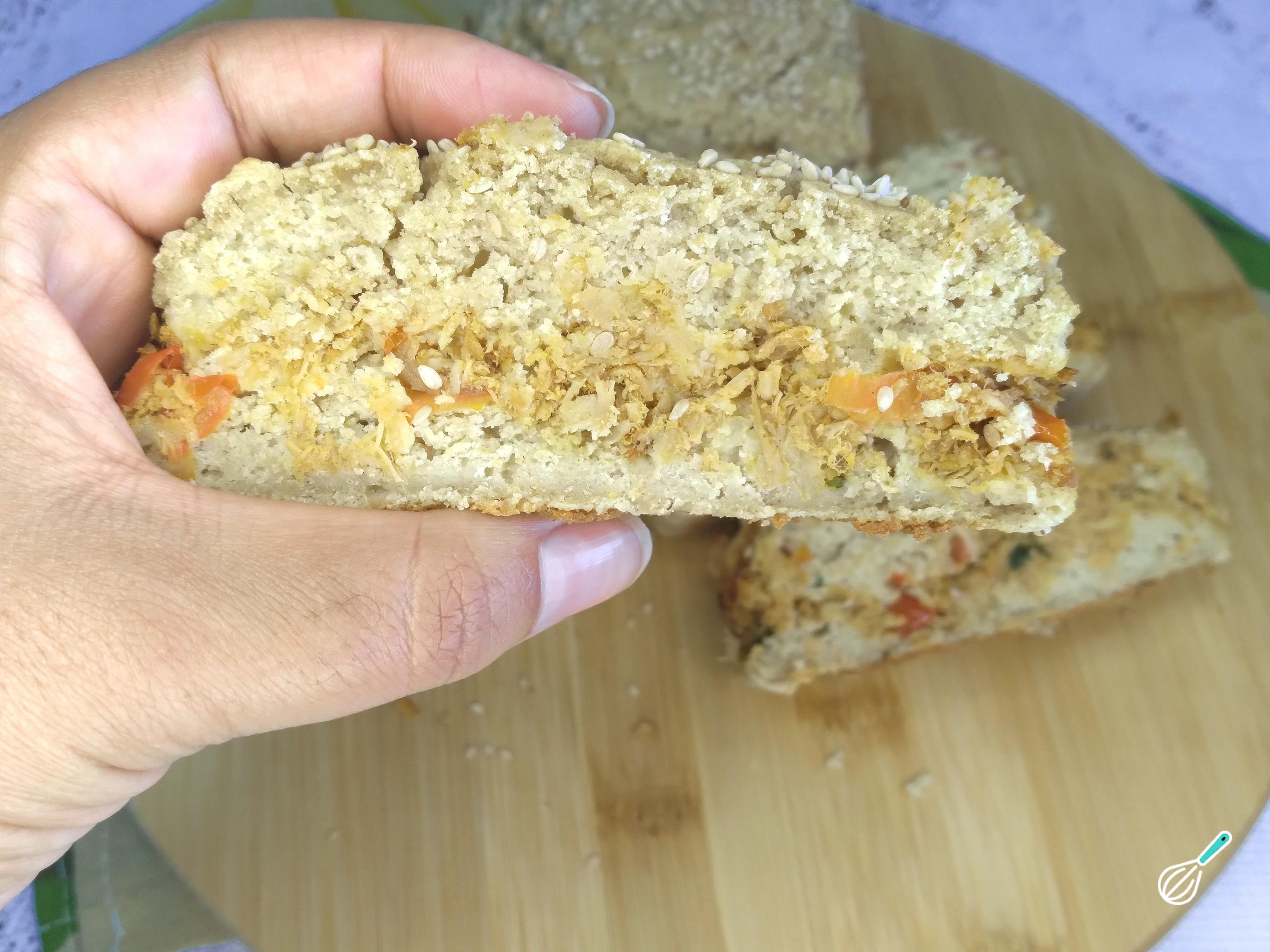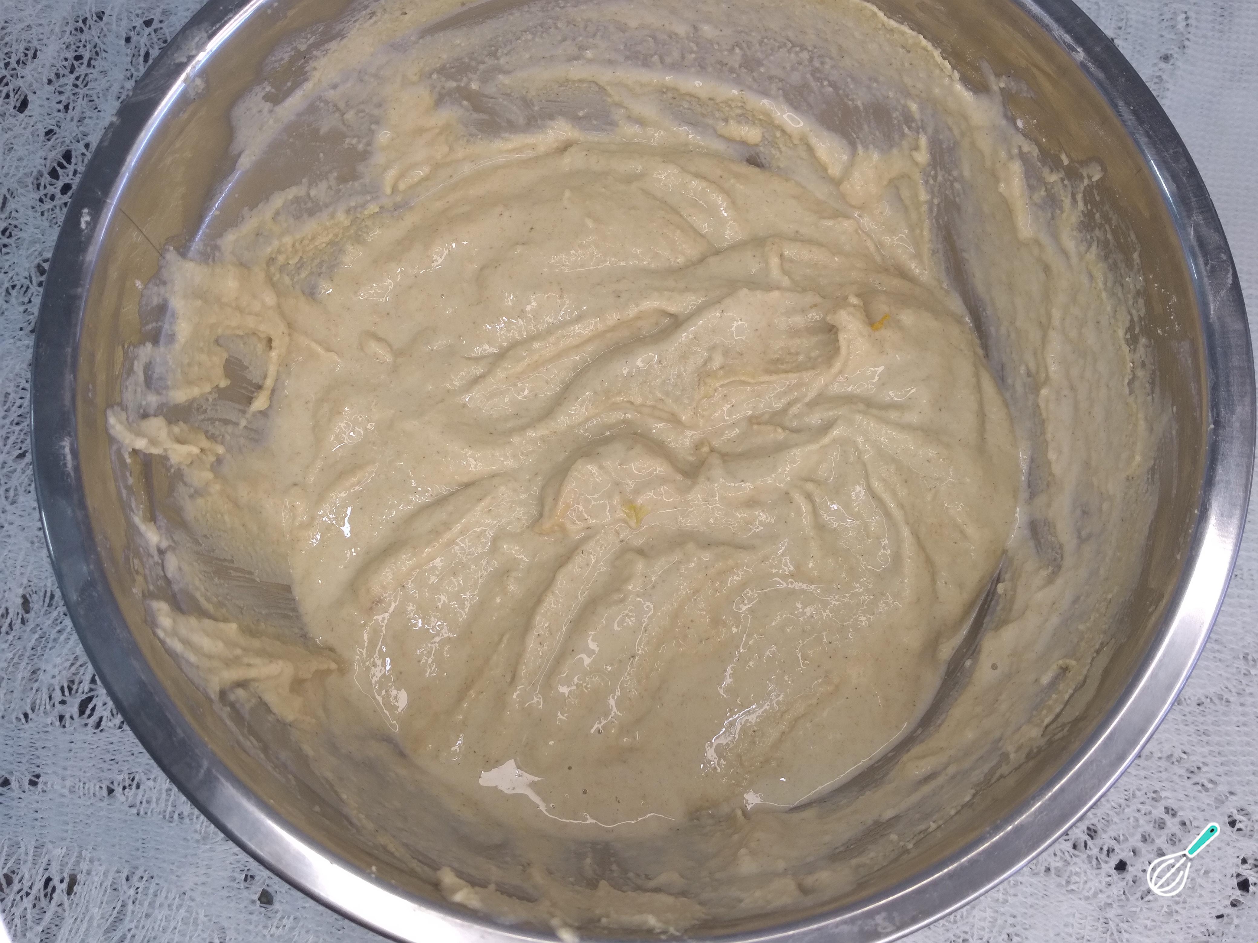 Feito isso, acrescente a farinha de arroz e mexa com o fouet até ficar uma massa bem lisinha. Acrescente os temperos de sua preferência e sal. Em seguida acrescente a farinha de aveia. Nessa etapa do preparo, vá adicionando água aos poucos e mexendo. Conferindo a textura.
