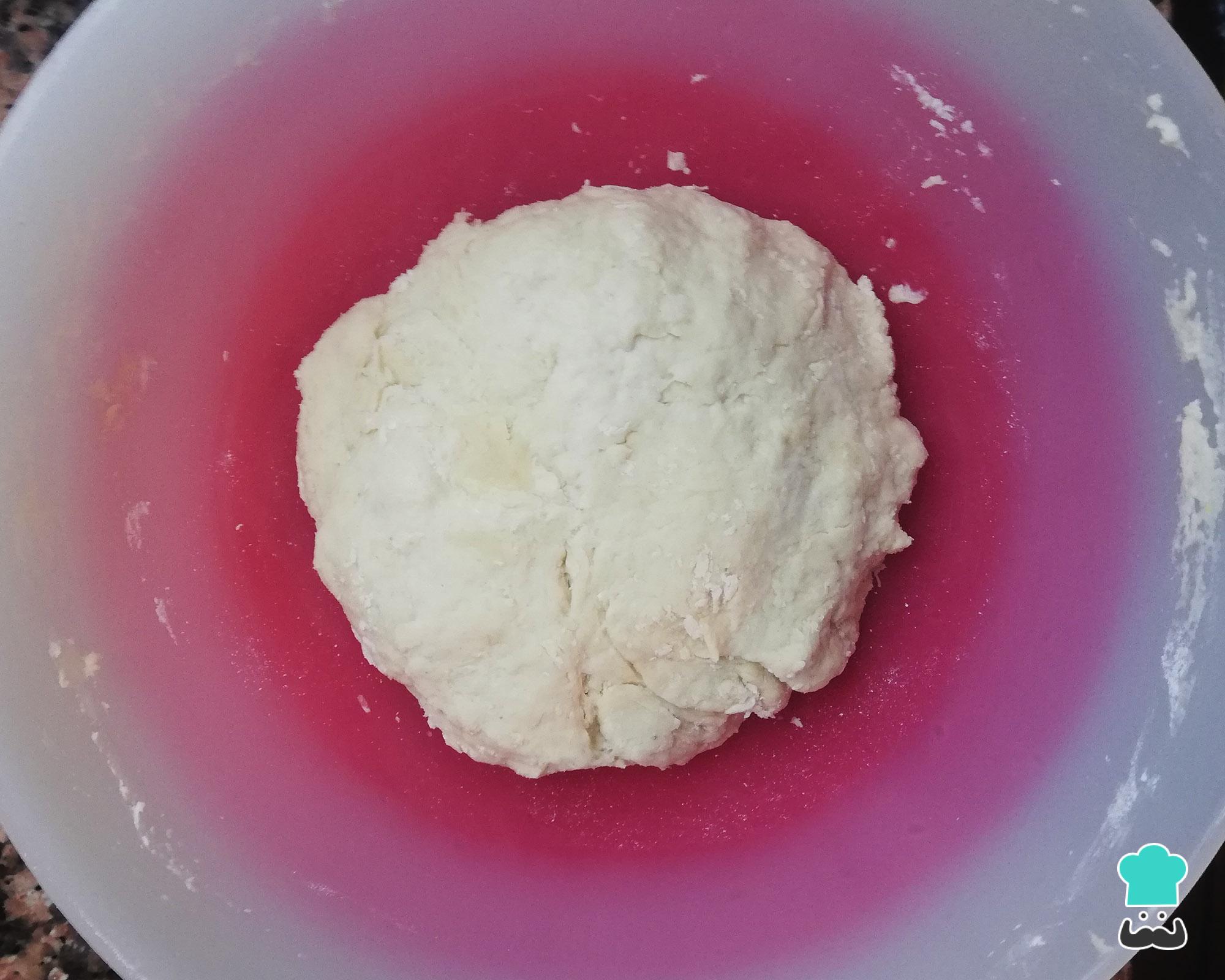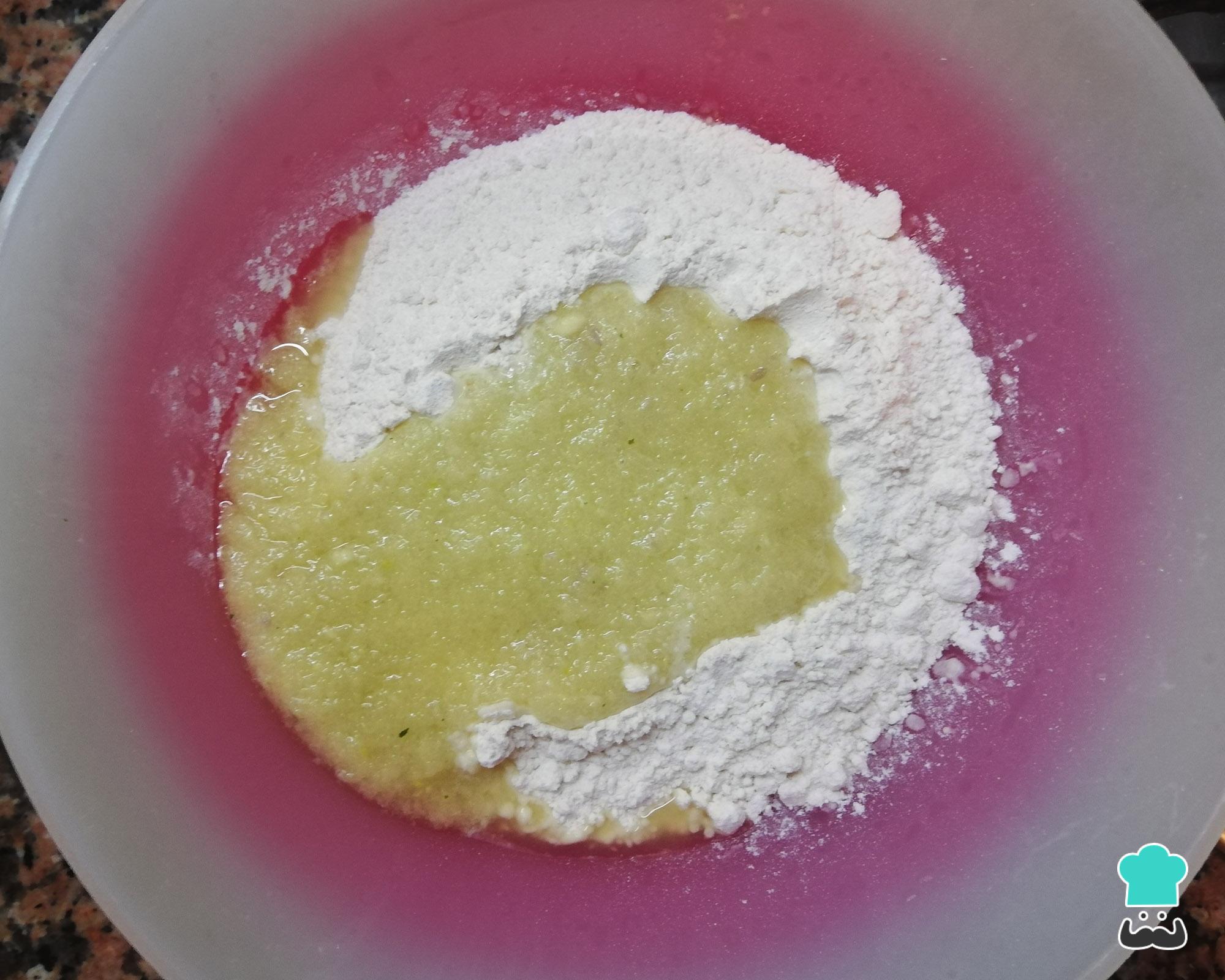 Bata a cebola com água no liquidificador até que forme-se um líquido pastoso. Num bowl misture a farinha de trigo, o óleo e a pasta de cebola preparada no liquidificador.