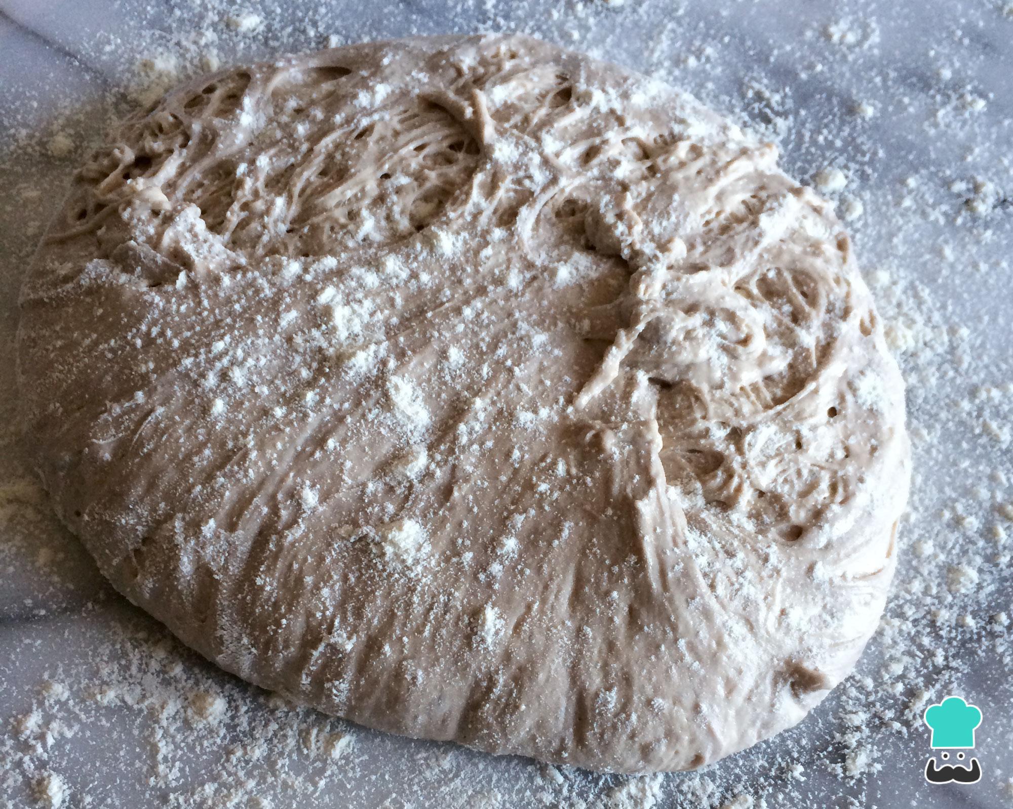 Amasse e sove a massa até ficar macia e consistente. Modele em forma de bola, coloque em uma assadeira, polvilhe farinha e deixe crescer até começar a craquelar.