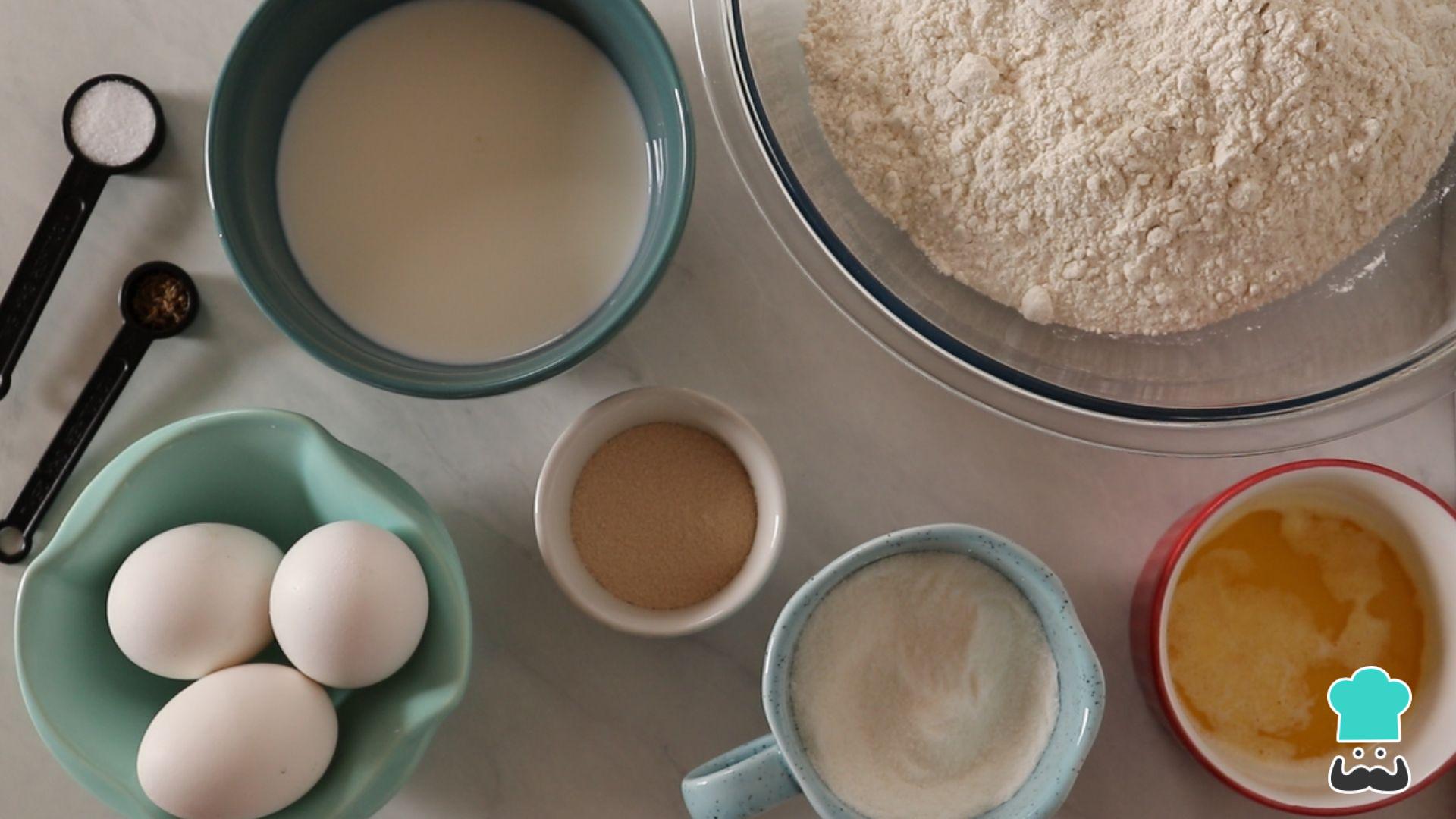 Separe os ingredientes. Os ovos devem estar em temperatura ambiente e a manteiga derretida.