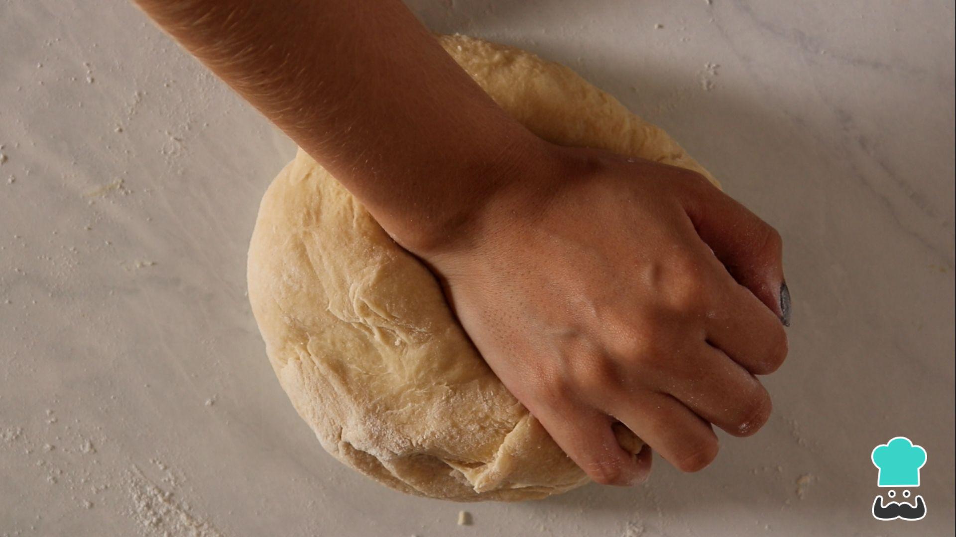 Coloque um pouco de farinha na bancada, continue adicionando o restante da farinha e comece a sovar a massa até ela ficar lisa e grudando levemente nas mãos (mais ou menos 15 minutos).