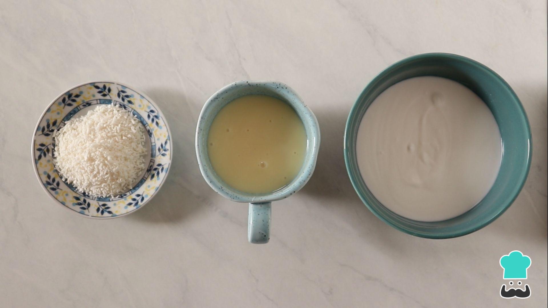 Enquanto isso, vamos preparar a cobertura de coco e leite condensado.