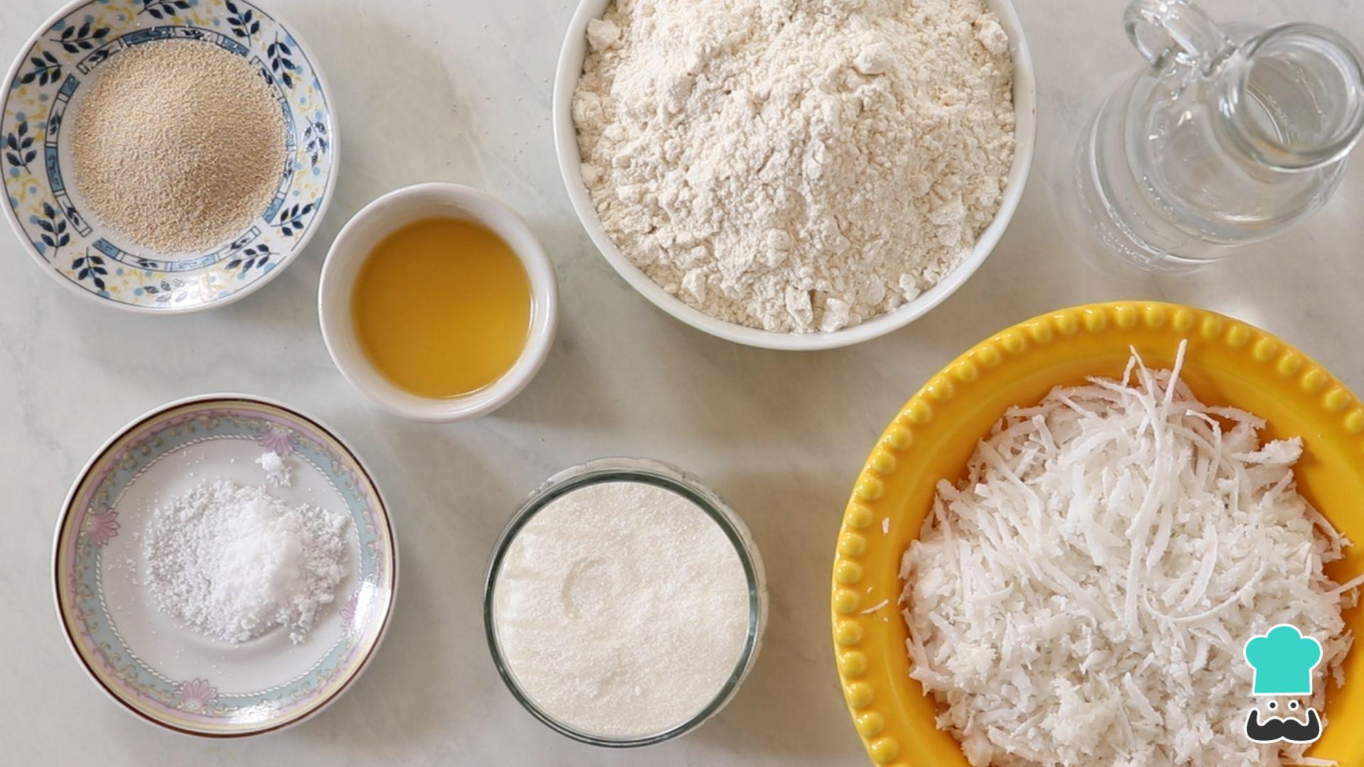 Para deixar o preparo do seu pão de coco caseiro organizado comece separando os ingredientes.