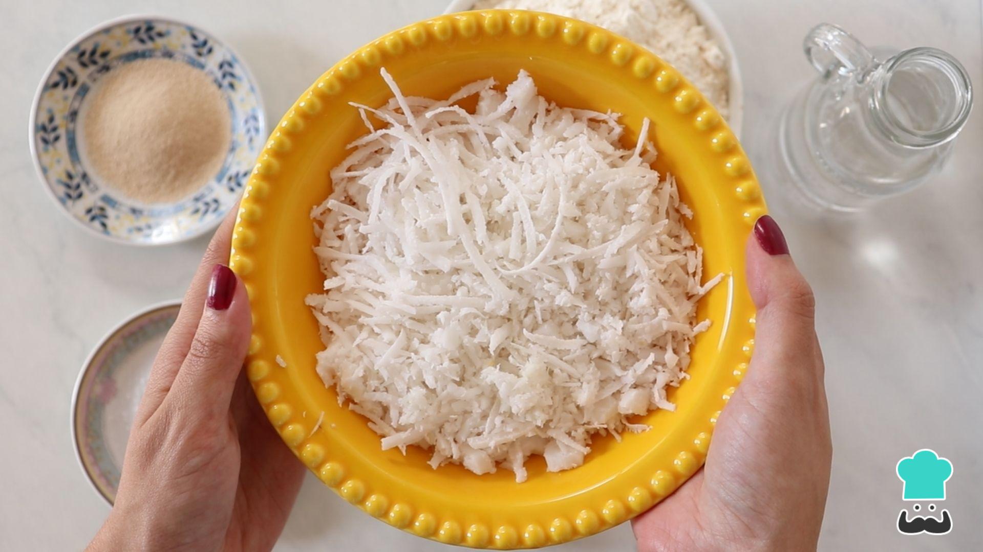 Use, de preferência, coco ralado fresco. Mas se não tiver, pode usar o coco seco ralado industrializado.