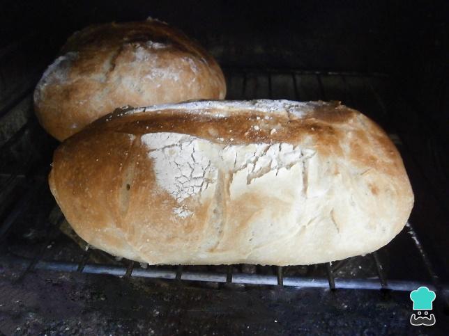 Coloque o pão assando por 20 minutos. Após esse tempo o pão deverá estar crescido, por isso ligue o calor também em cima, baixe a temperatura para os 200ºC e deixe assar por mais 10-20 minutos, ou até dourar.