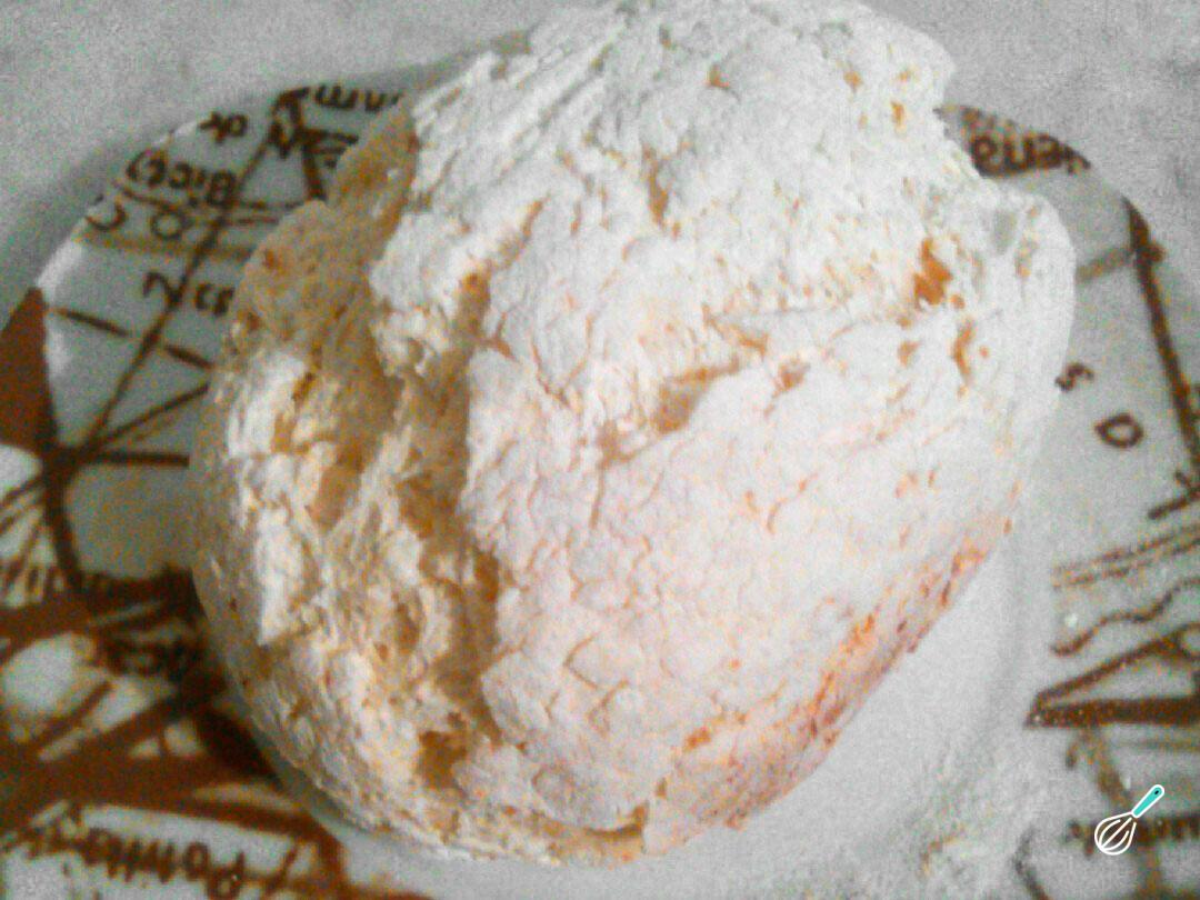 Dica: Neste passo não precisa modelar o pão com as mãos, somente enfarinhar bem a vasilha e agitar ela até o pão ficar bem redondidnho.