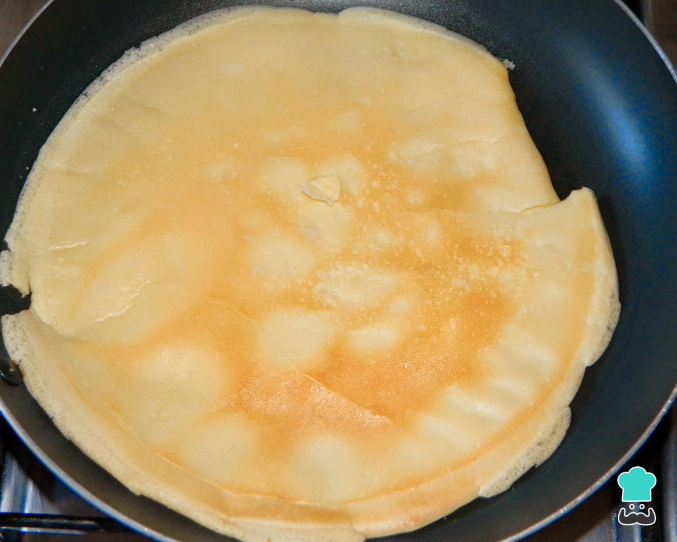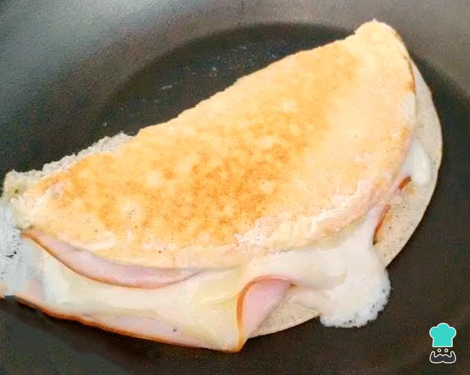 Leve ao fogo médio uma frigideira anti-aderente ou levemente untada com óleo. Quando estiver quente, coloque a mistura anterior e deixe por 2 minutos ou até a parte de baixo soltar e a massa ficar levemente firme.