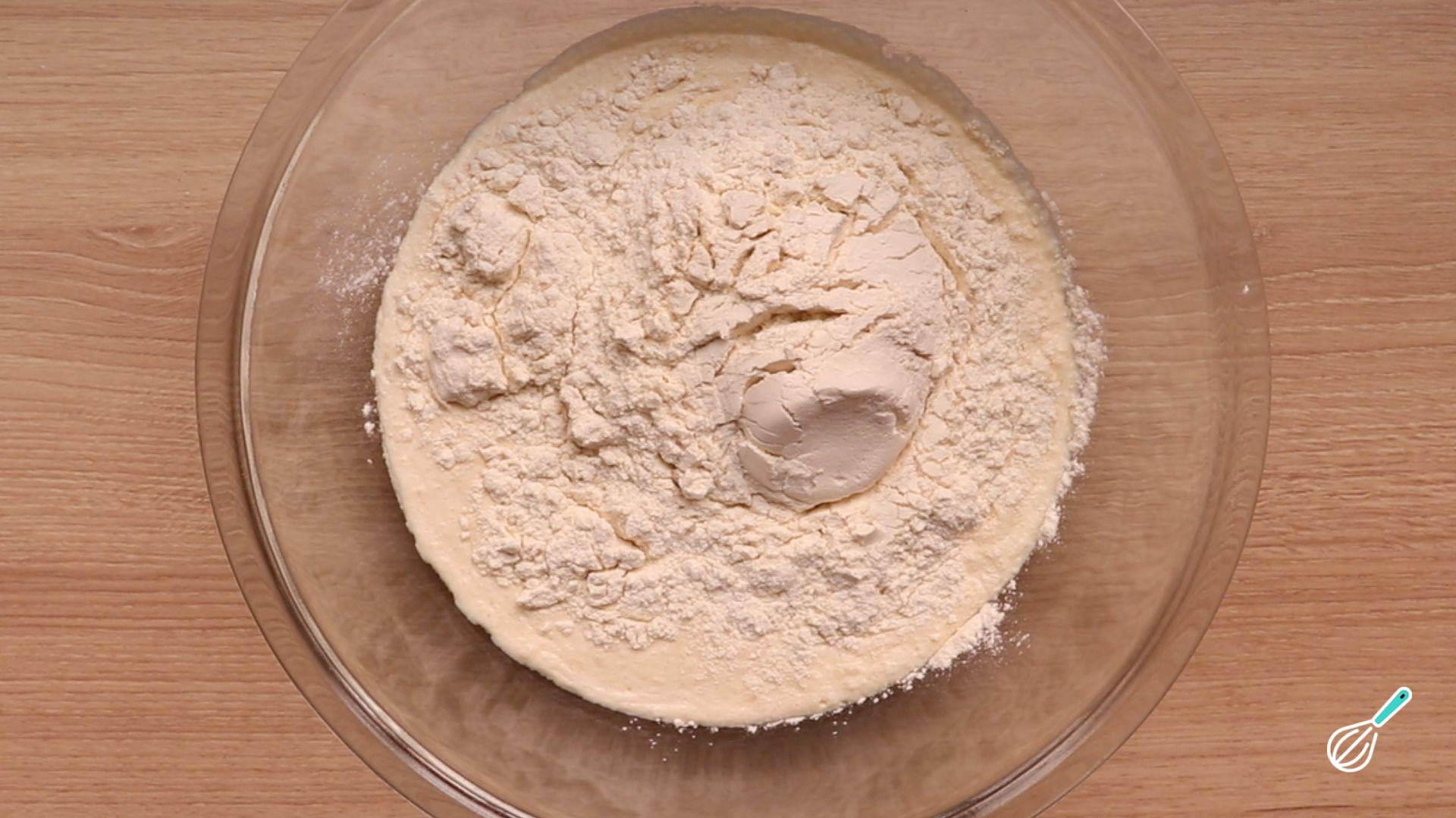 E adicione a farinha aos poucos, misturando uma uma espátula de silicone ou colher de pau.