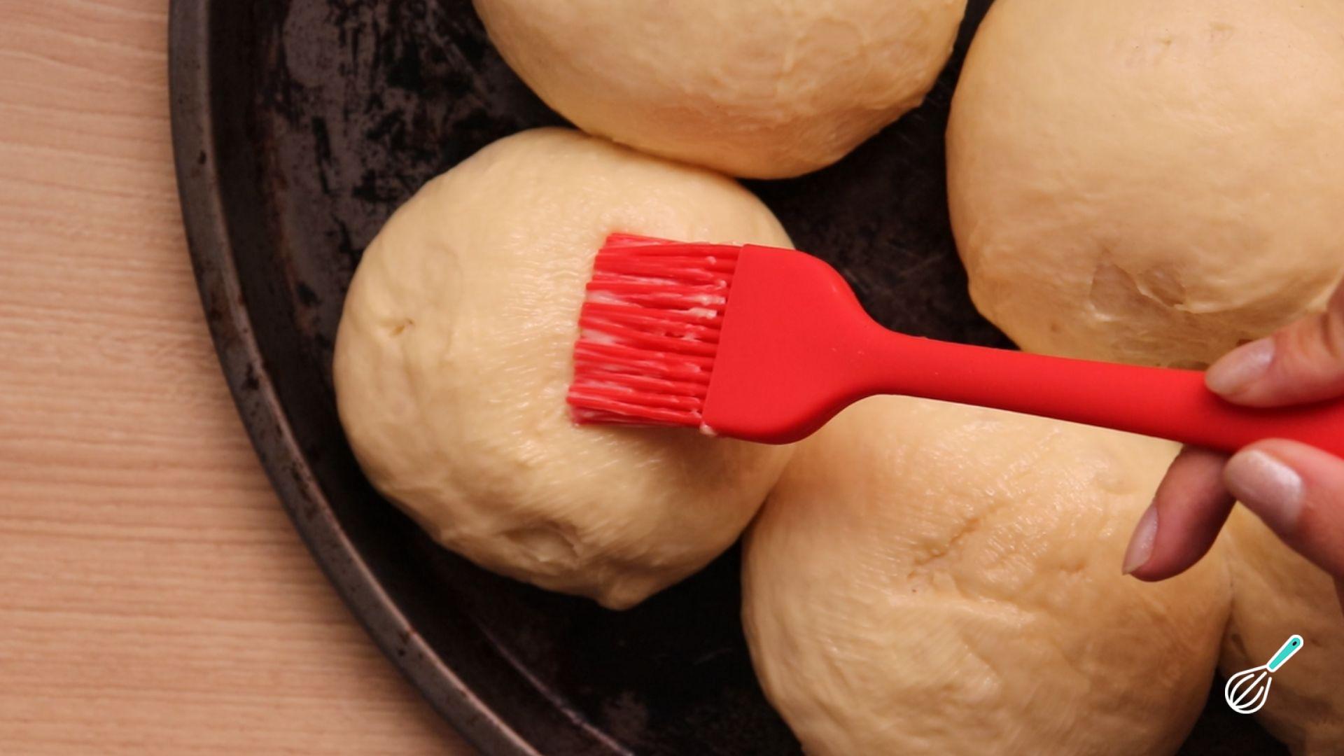 Pincele manteiga na superfície dos pães e leve ao forno préaquecido a 180 graus por mais ou menos 20 minutos ou até os pães ficarem douradinhos.
