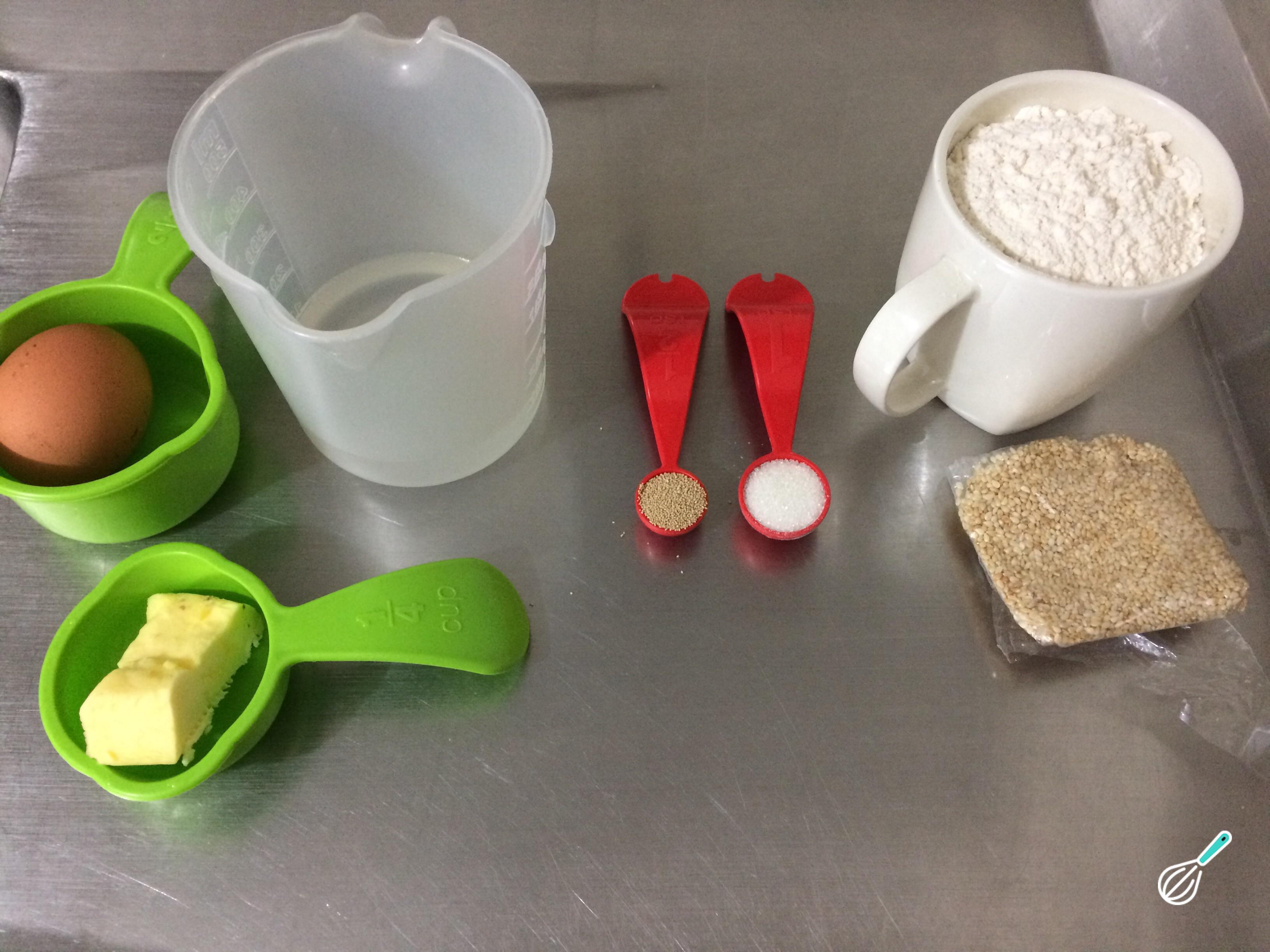 Antes de fazer estes pães caseiros, o primeiro passo é preparar todos os ingredientes.