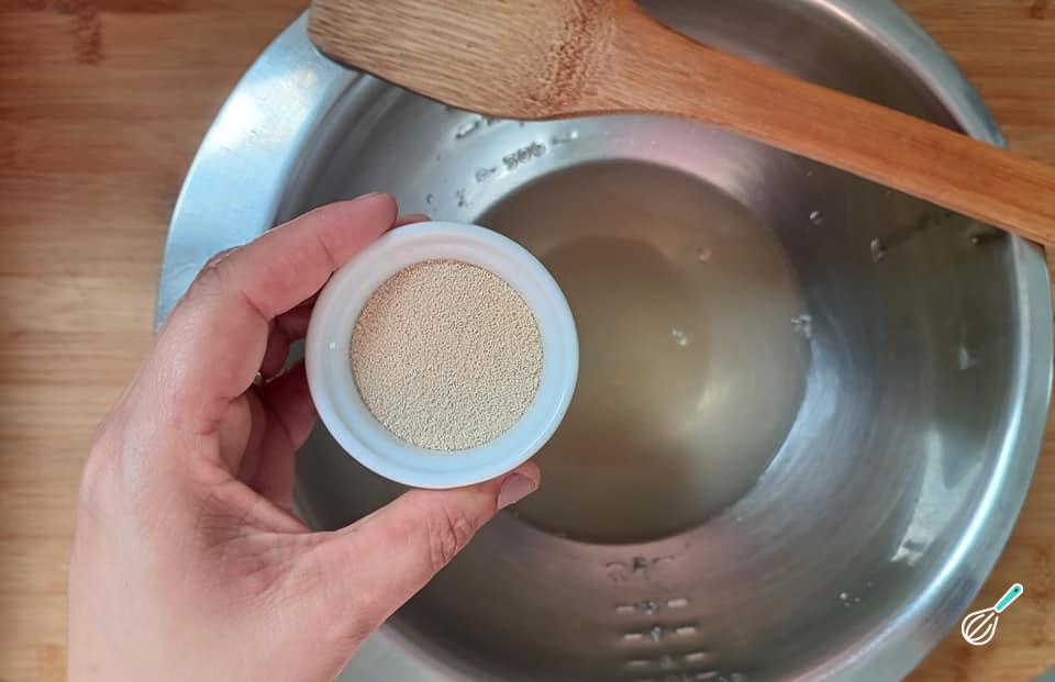 A água precisa estar morna e não quente, para não inibir a ação do fermento.