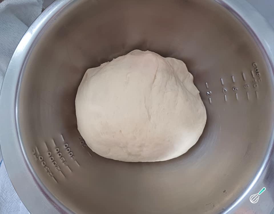 Vá adicionando a farinha de trigo aos poucos até que a massa desgrude levemente das mãos, sem perder a textura macia e elástica.