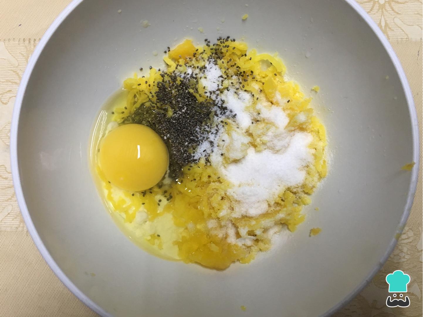 Depois do passo anterior continue preparando a receita de pão de mandioquinha com chia: amasse a mandioquinha em um recipiente e junte o restante dos ingredientes.