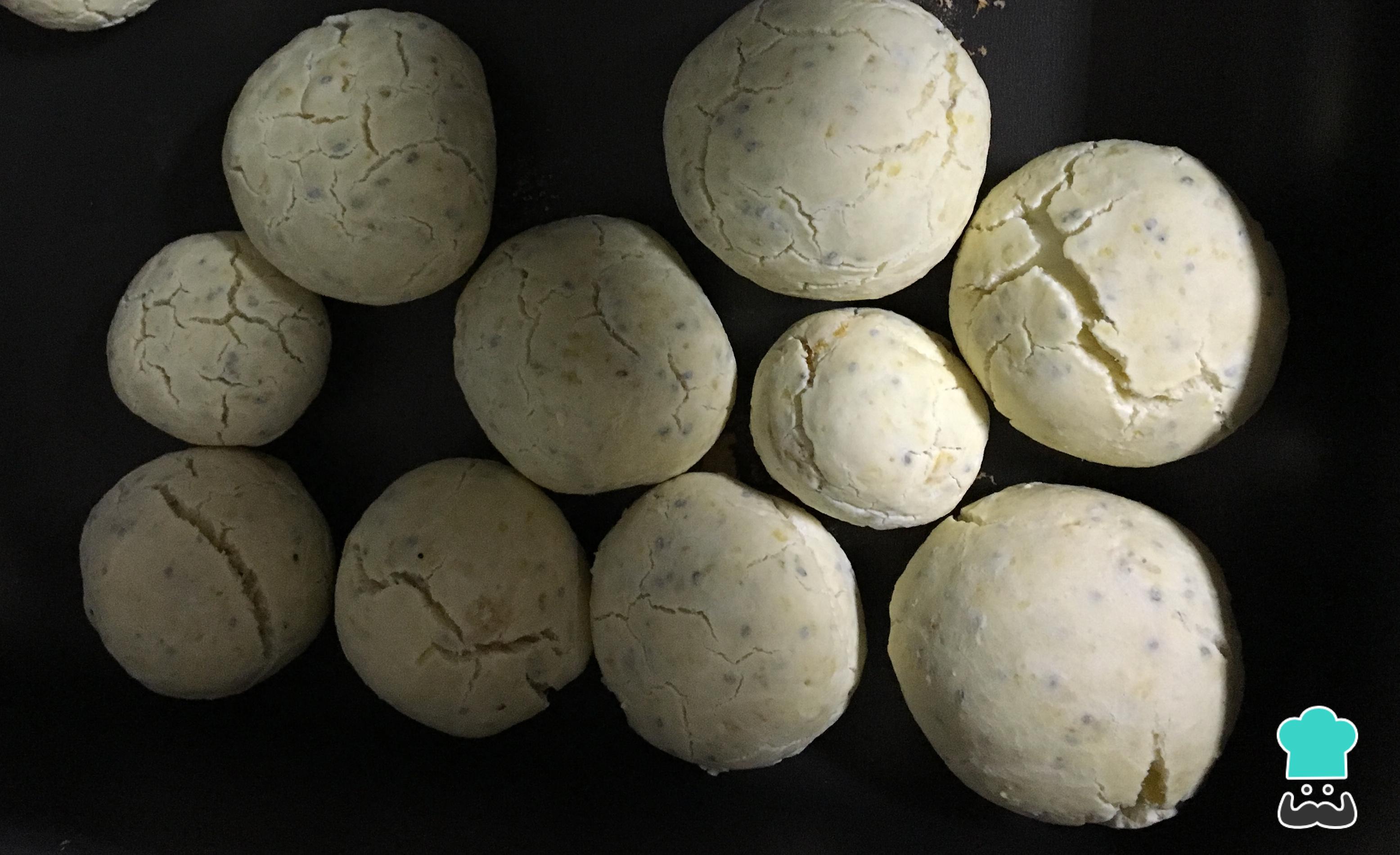 Enrole, coloque numa forma e leve para assar a 180CºC até dourar. O aspecto final será muito semelhante ao de pão de queijo tradicional.