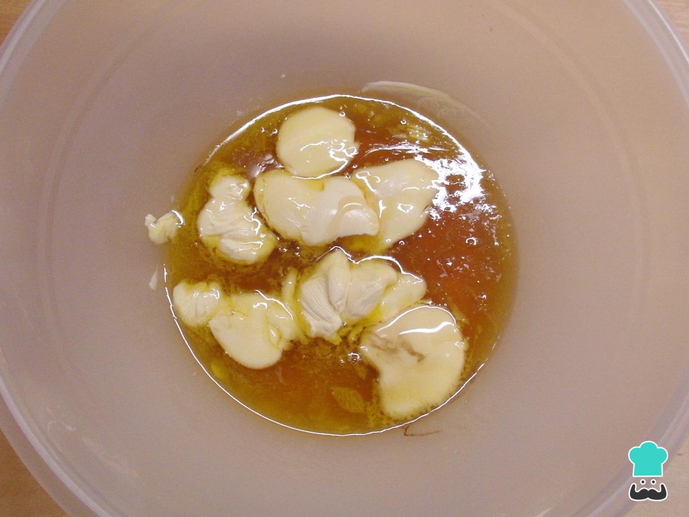 Para fazer esta receita de pão de mel, comece por bater a manteiga e o mel, de preferência com a batedeira elétrica. Sem parar de bater, acrescente os ovos um a um.