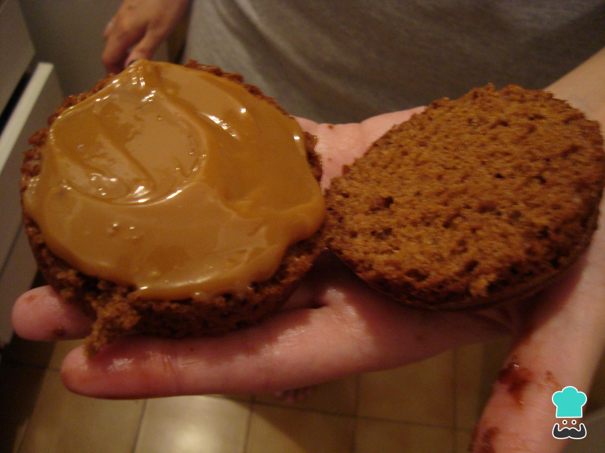 Quando o bolo estiver assado, retire do forno e deixe esfriar. Depois desenforme, corte em rodelas usando um cortador redondo e, se quiser, pode cortar ao meio para rechear com doce de leite.